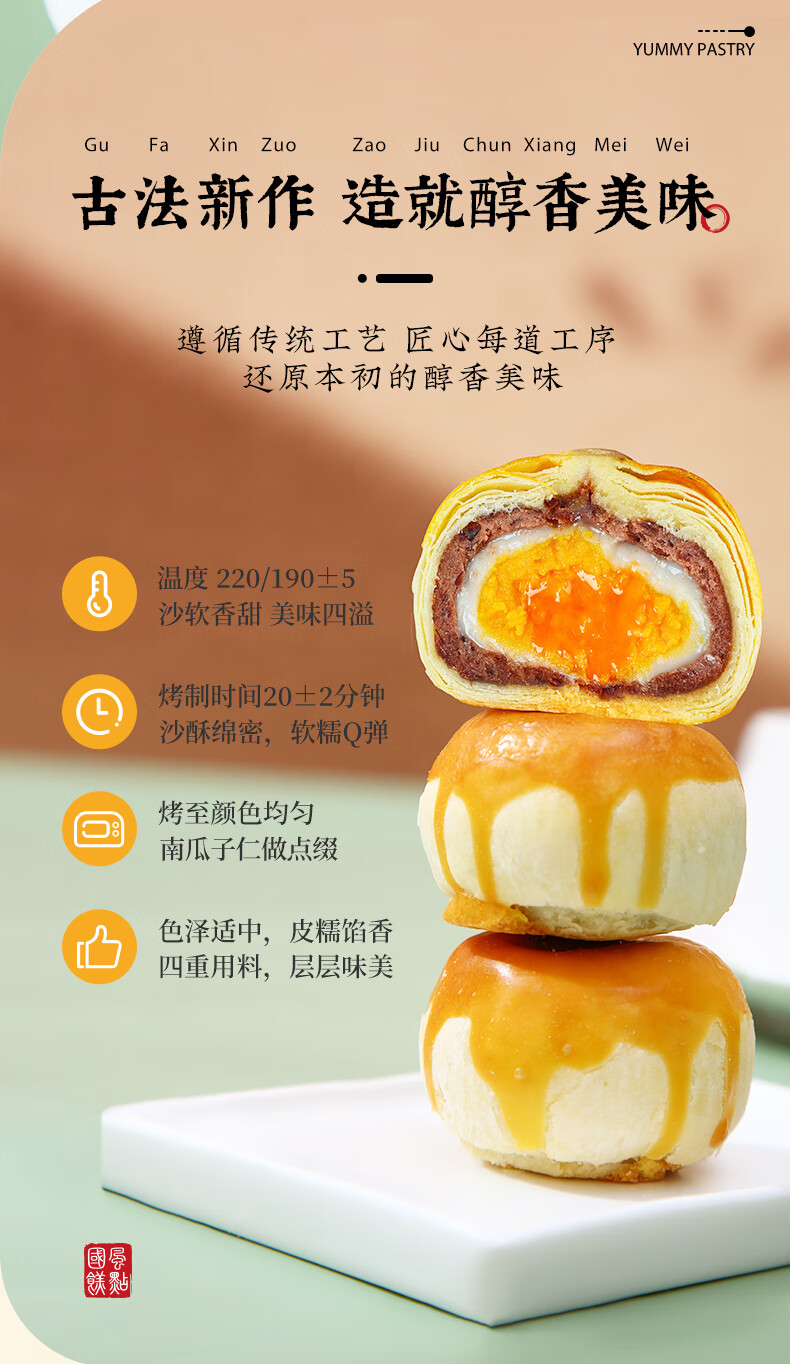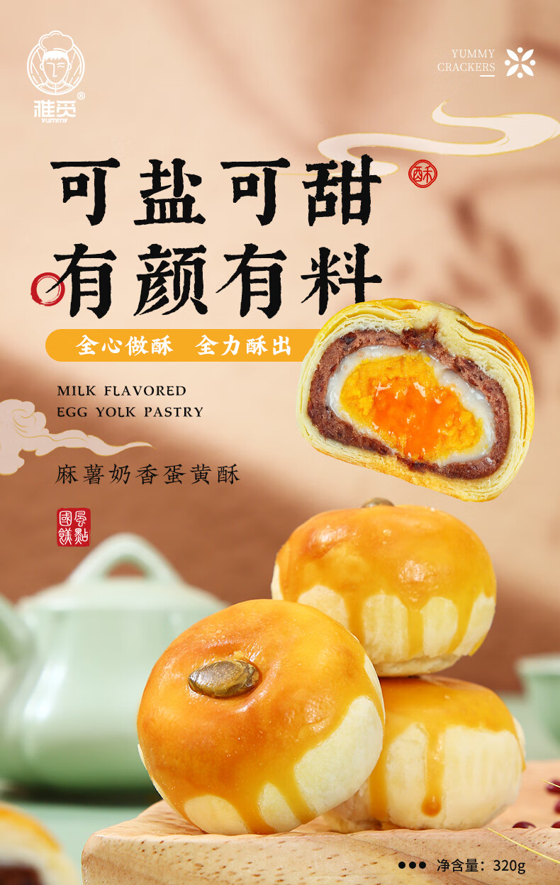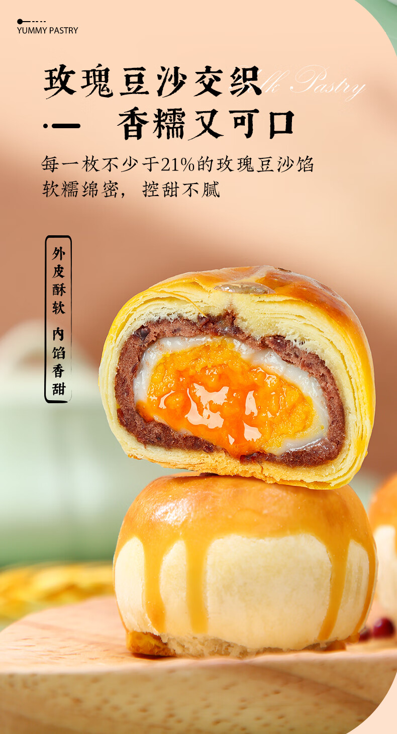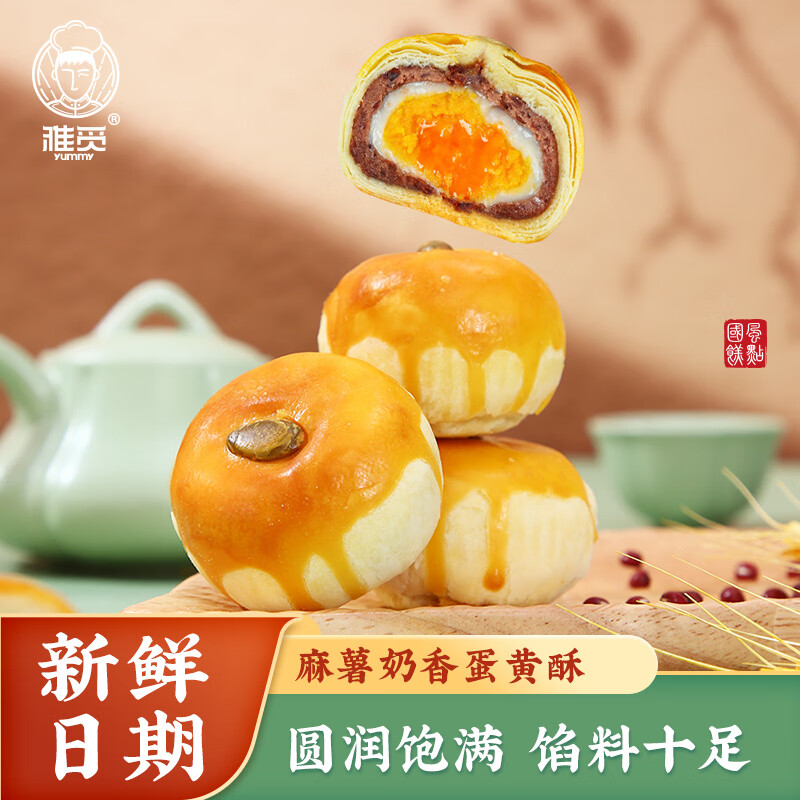 雅觅 麻薯奶香蛋黄酥 手工雪媚娘蛋黄酥休闲零食 320g×1盒(8枚) 自营
