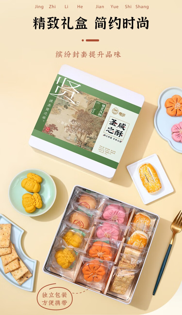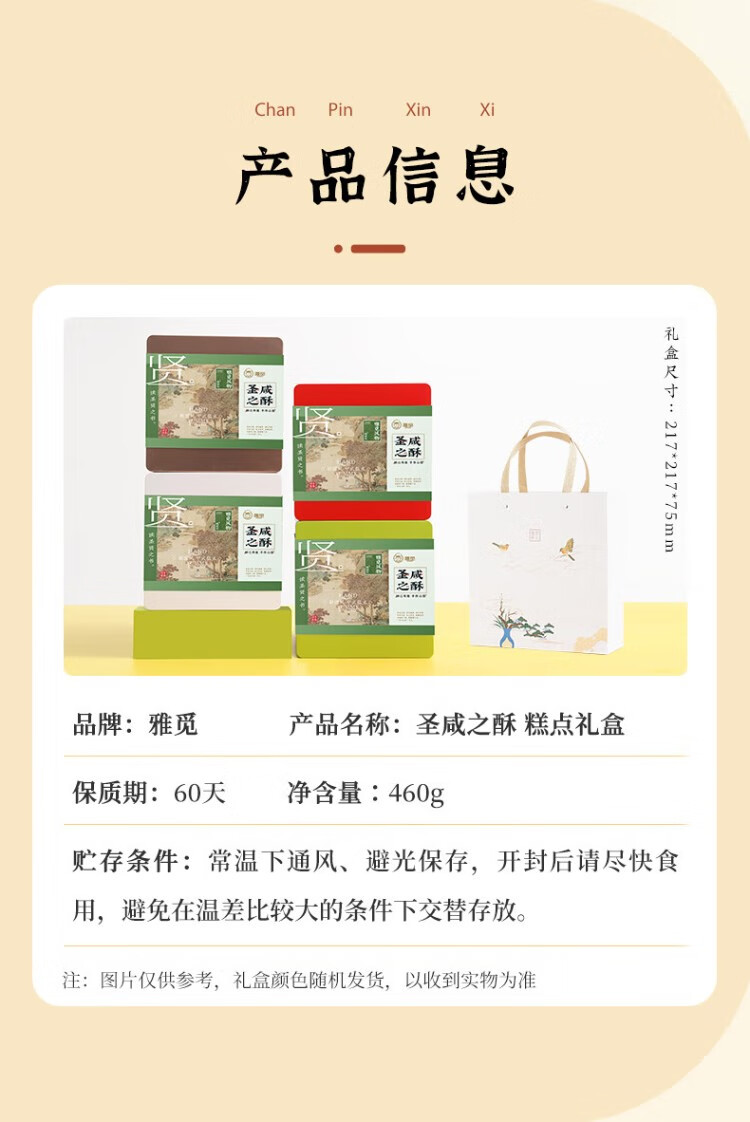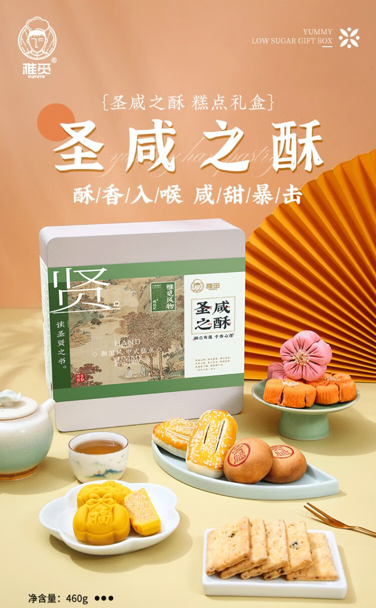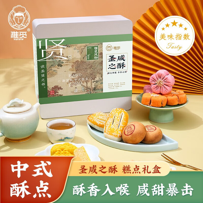 雅觅 礼物桃花酥千层酥办公室茶点零食 圣咸之酥糕点礼盒装440g 自营
