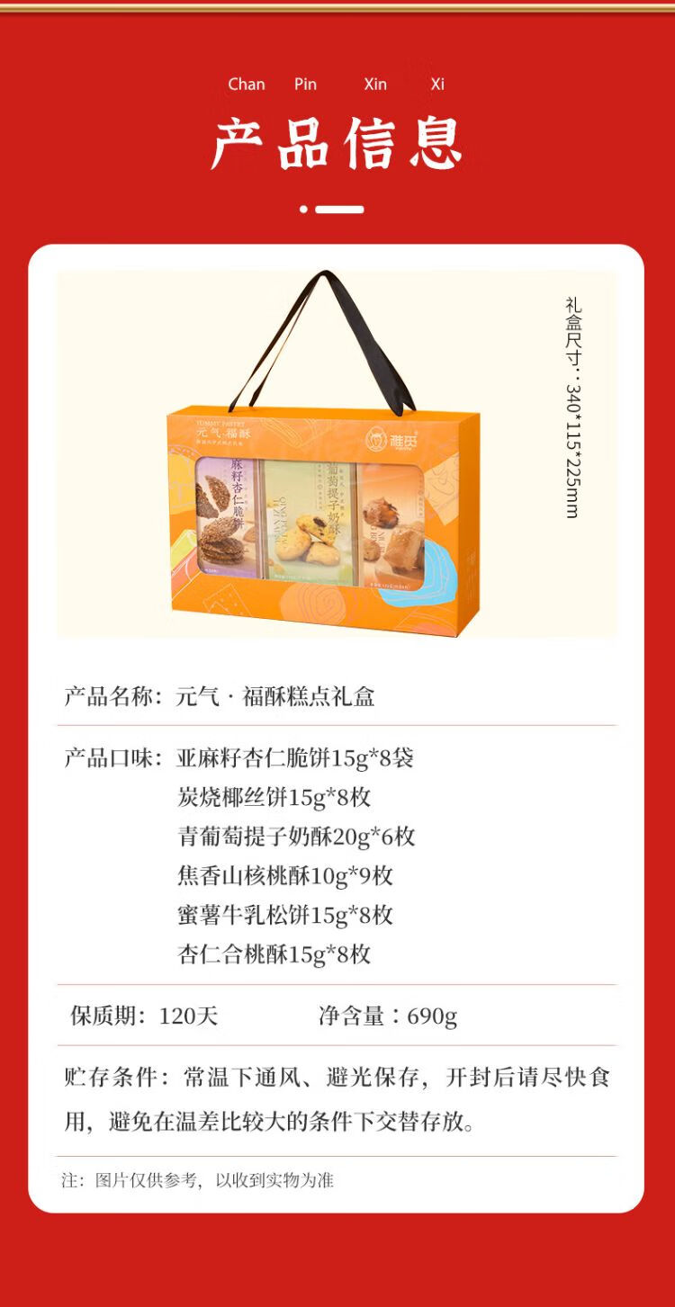 雅觅 传统中式糕点 休闲零食小吃 雅觅 元气·福酥 糕点礼盒690g 自营