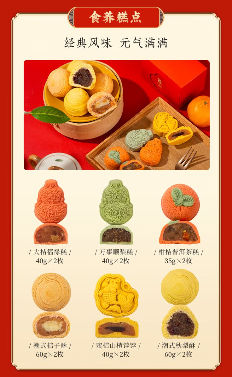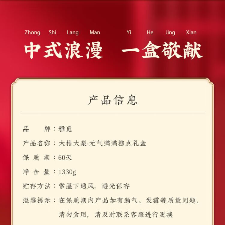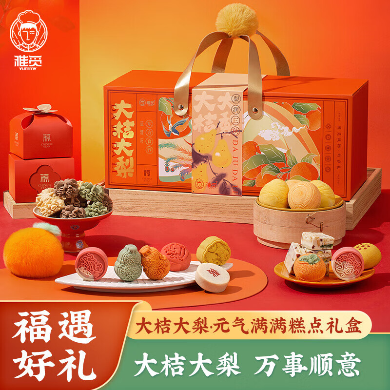 雅觅 传统中式糕点 休闲零食小吃 雅觅大桔大梨·元气满满糕点礼盒1330g 自营