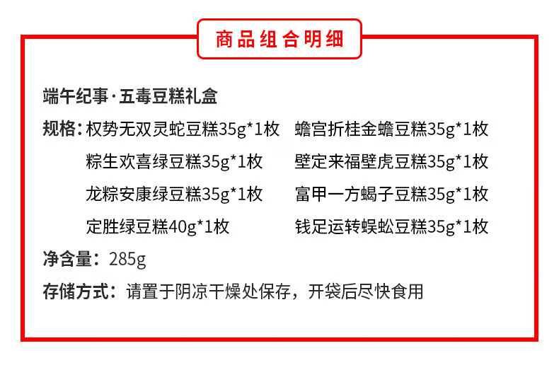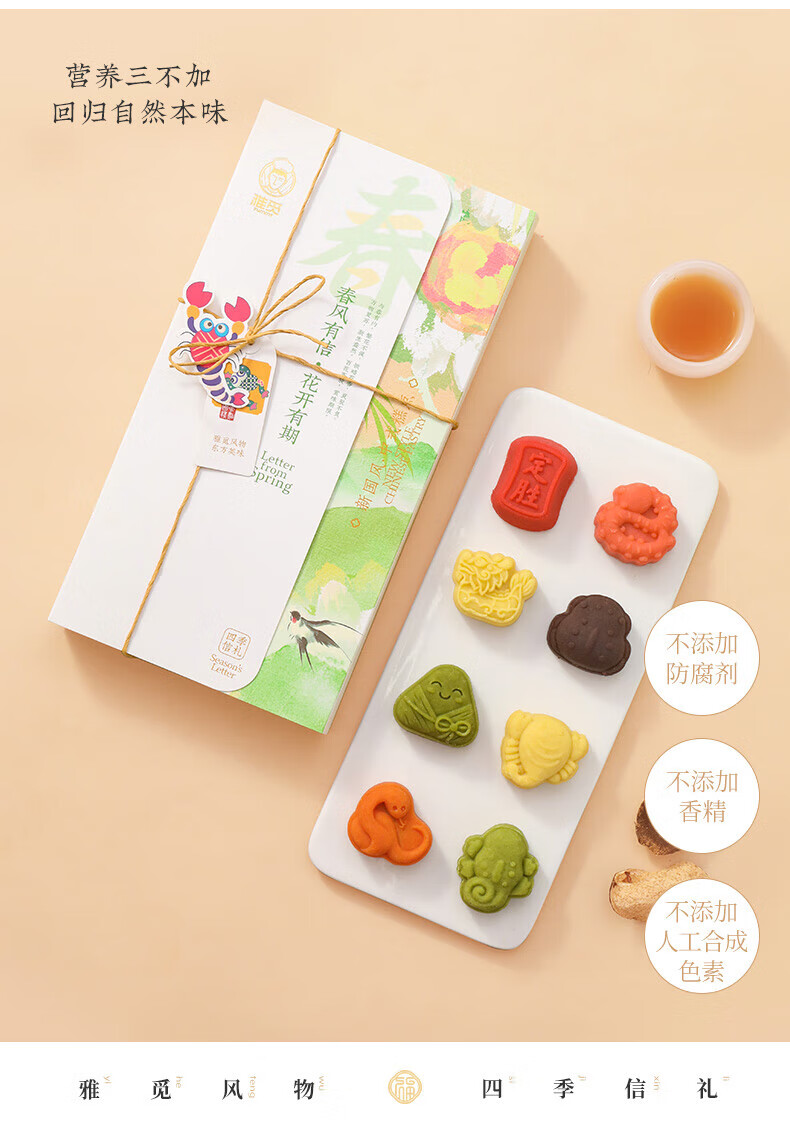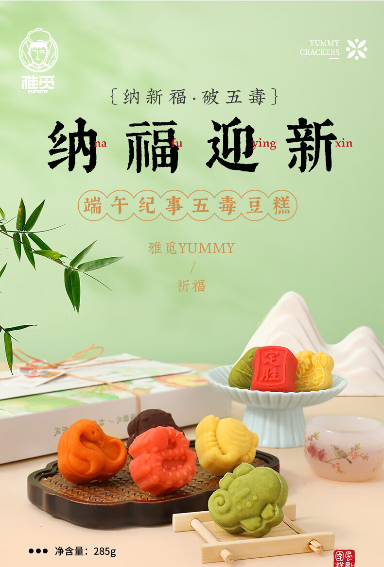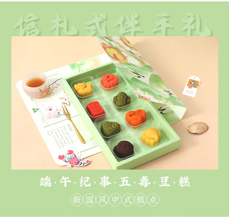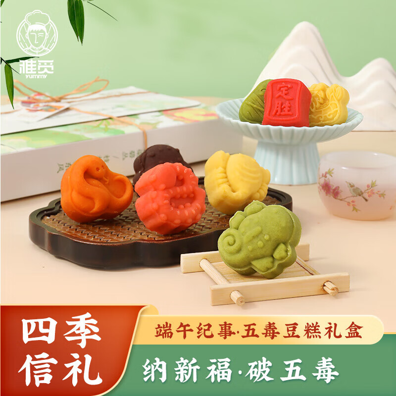 雅觅 端午糕点休闲零食新中式糕点礼盒 285g【五毒造型八味豆糕】 自营