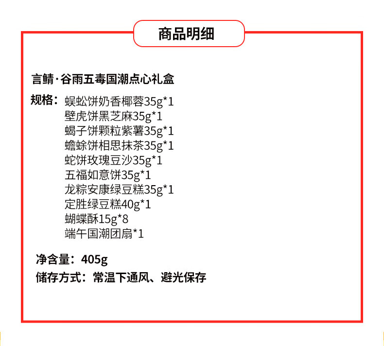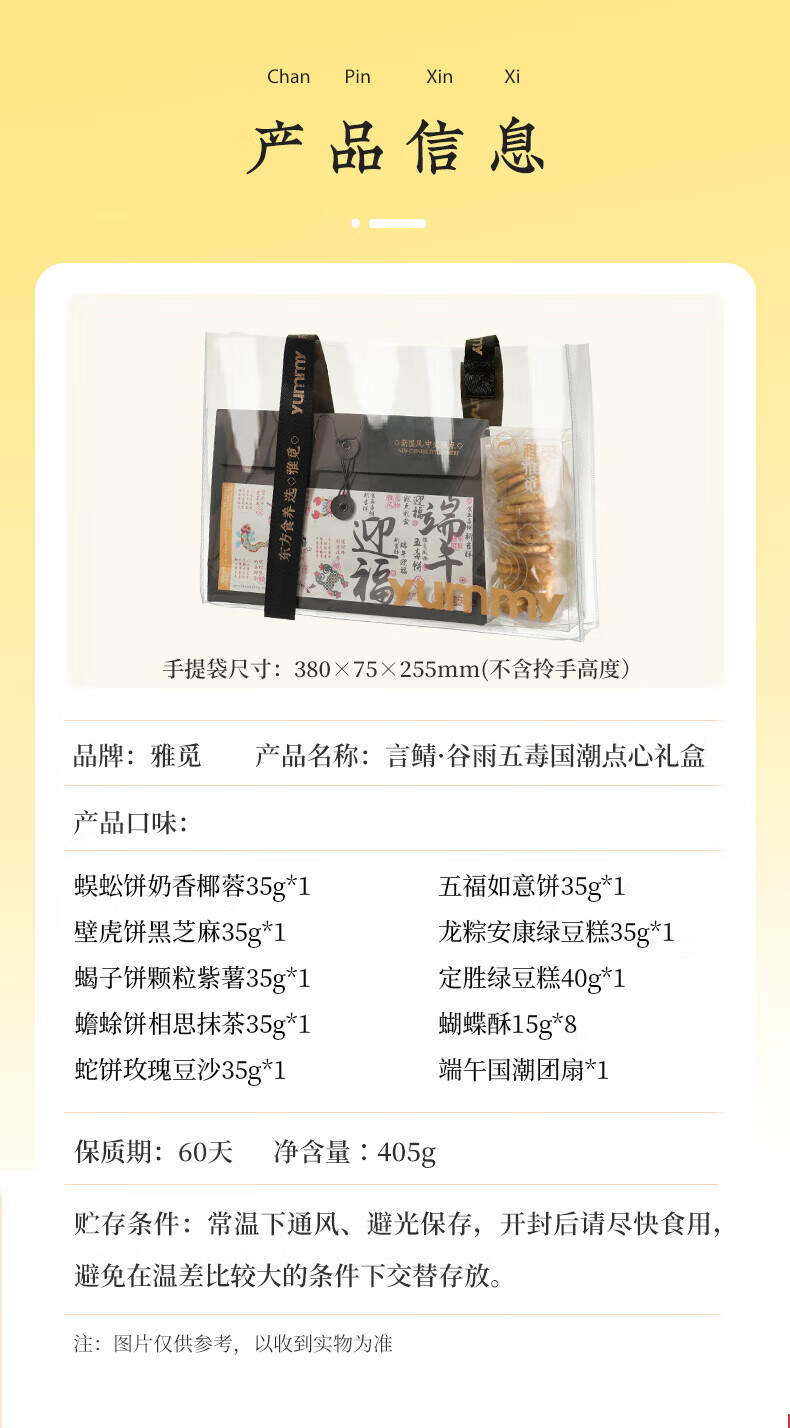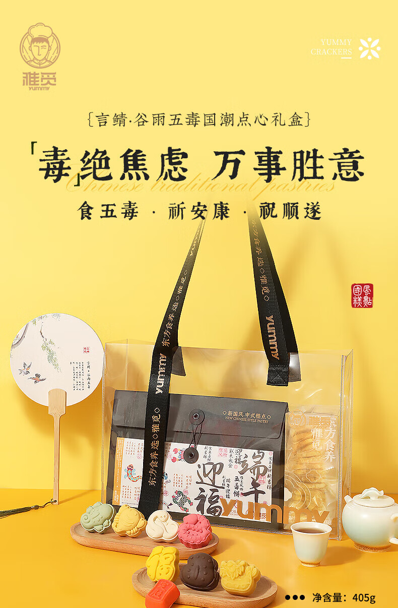 雅觅 言鲭谷雨五毒糕端午中式糕点休闲零食企业团购福利礼盒 405g 自营