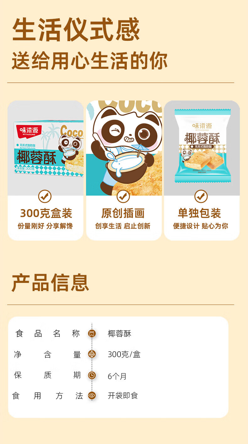 味滋源 传统糕点椰蓉酥美味早餐休闲零食 椰蓉酥300g×2箱 自营
