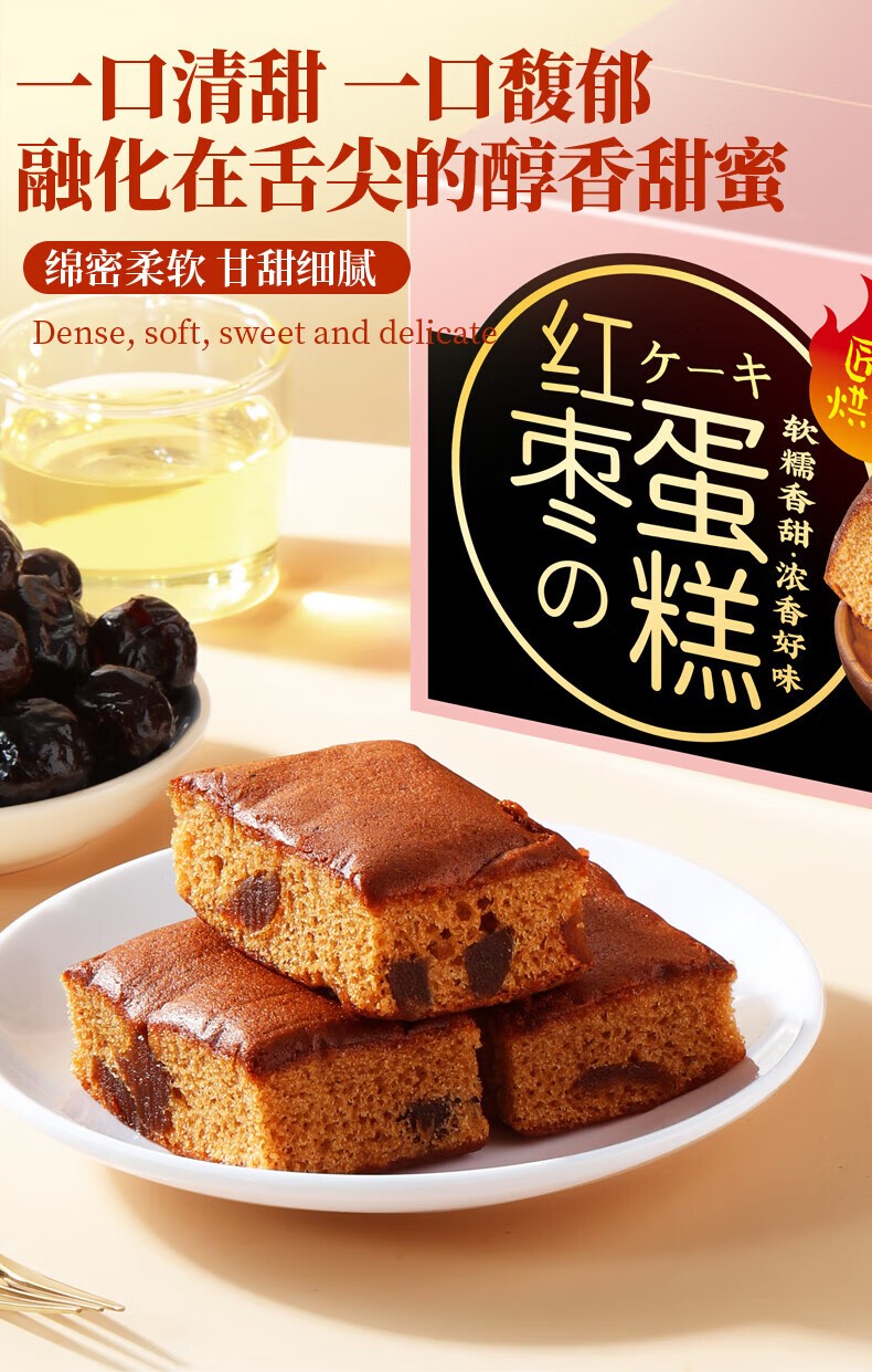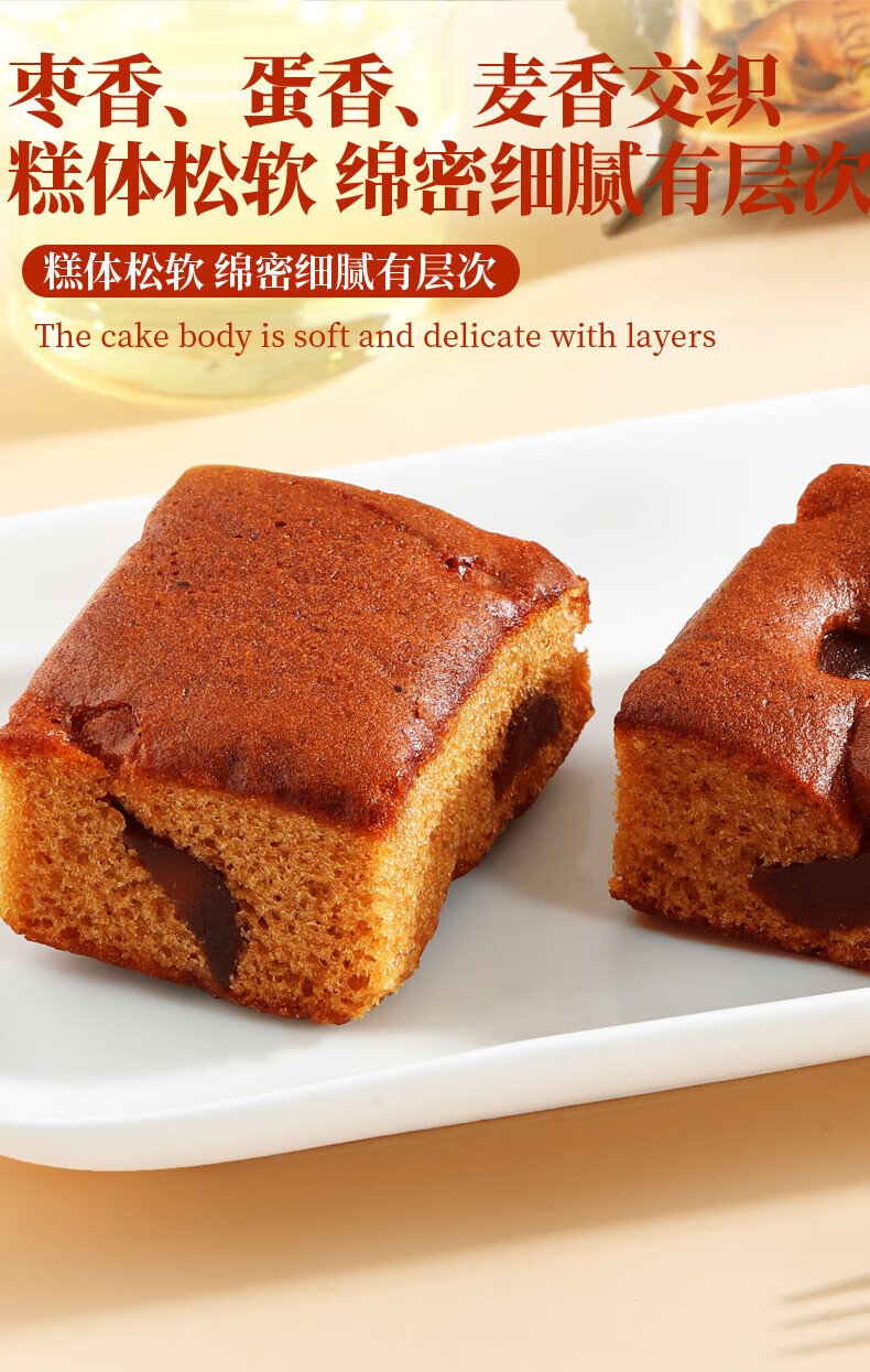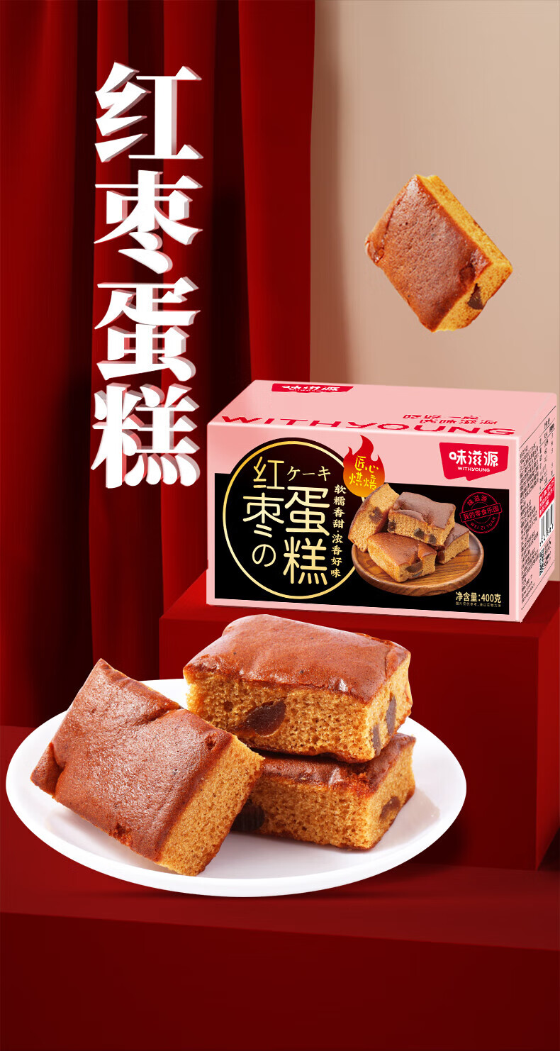 味滋源 红枣蛋糕食品代餐营养早餐枣泥糕点心下午茶 红枣蛋糕1箱400g×2箱 自营
