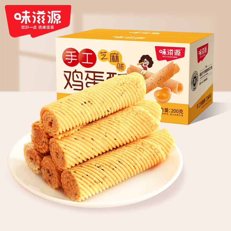 味滋源 鸡蛋卷200g休闲零食鸡蛋酥传统糕点下午茶点心 200g黑芝麻味×2箱 自营