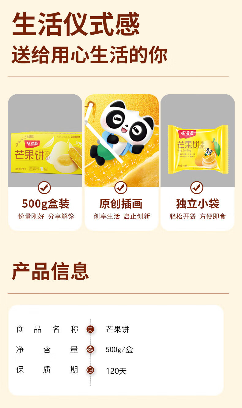 味滋源 榴莲饼芒果饼早餐食品传统糕点 芒果饼500g(约12枚)×2箱 自营