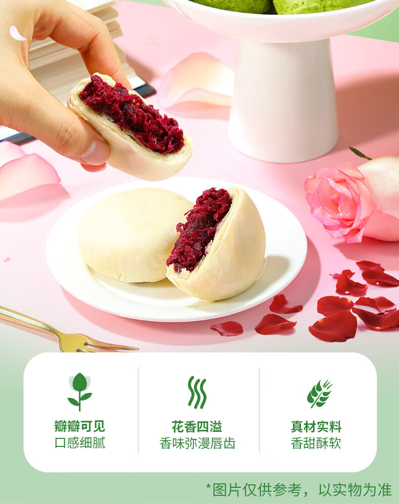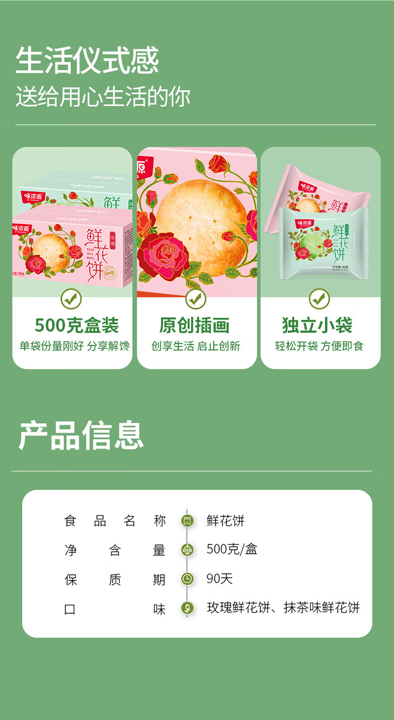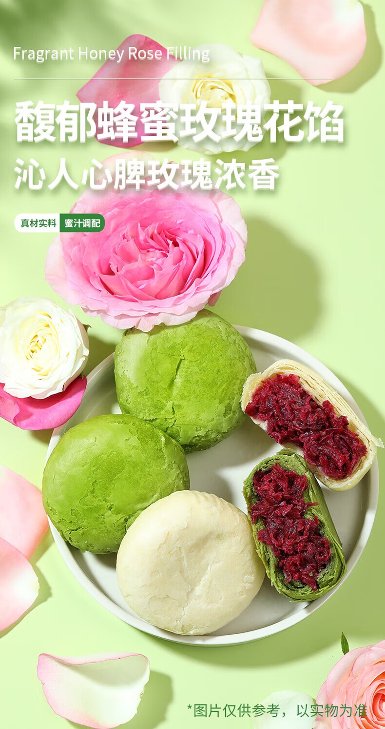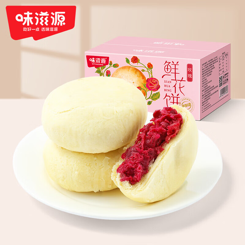 味滋源 玫瑰鲜花饼传统糕点早餐食品 玫瑰味500g(约12枚)×2箱 自营