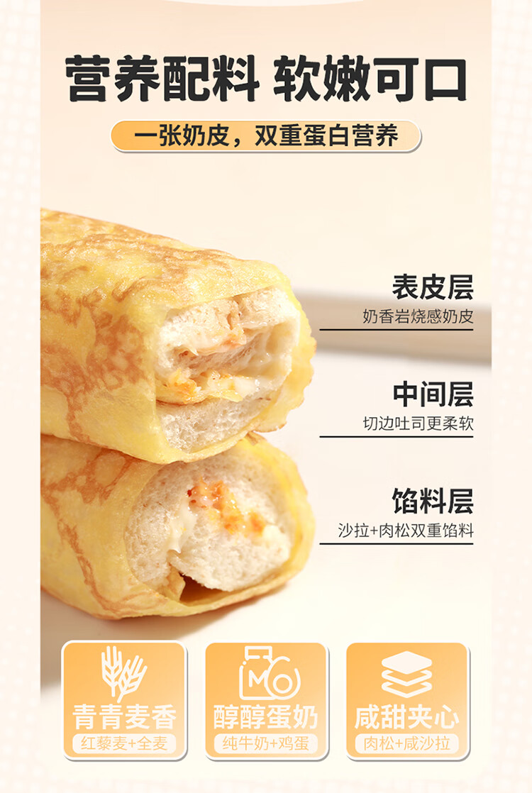 佬食仁 奶皮藜麦卷 夹心咸香营养早餐休闲零食 240g/5枚 1箱 DF01 自营