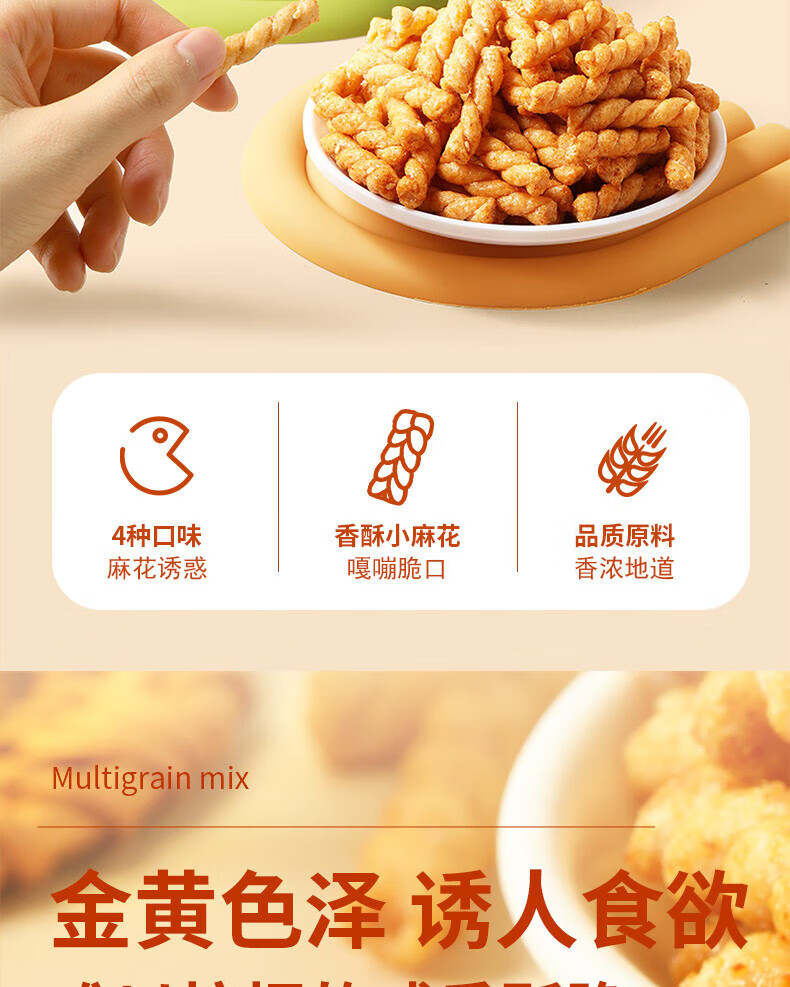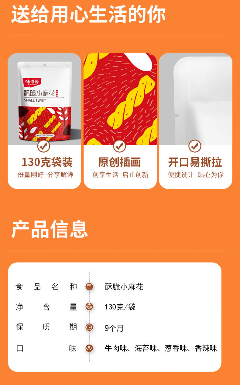 味滋源 小麻花袋装酥脆可口网红休闲零食小吃 小麻花130g(牛肉味)10袋 自营