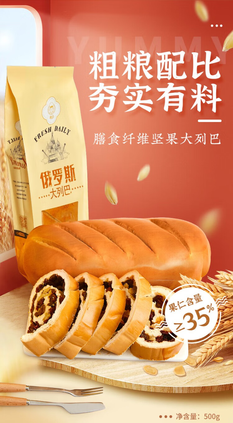 味滋源 切片面包风味大列巴坚果面包早餐食品休闲零食大列巴508gx2根