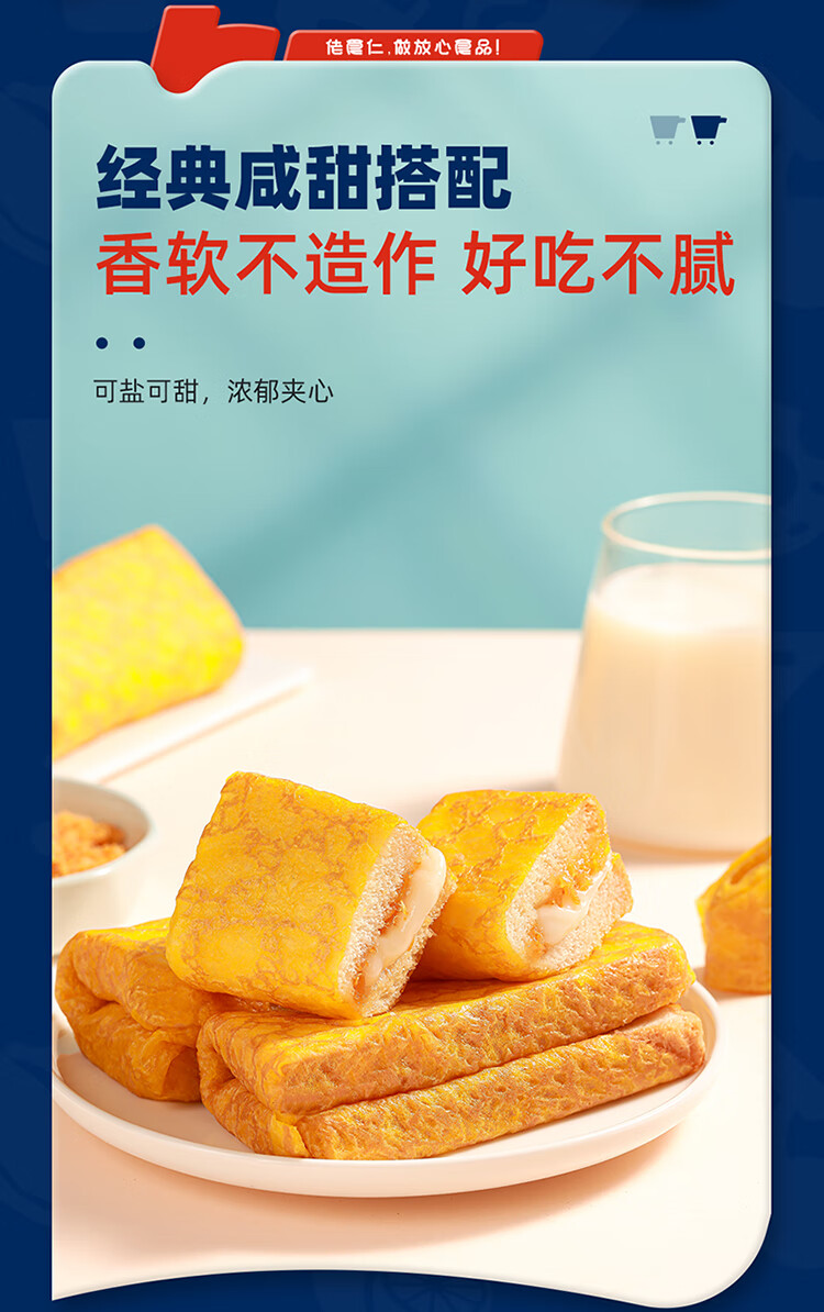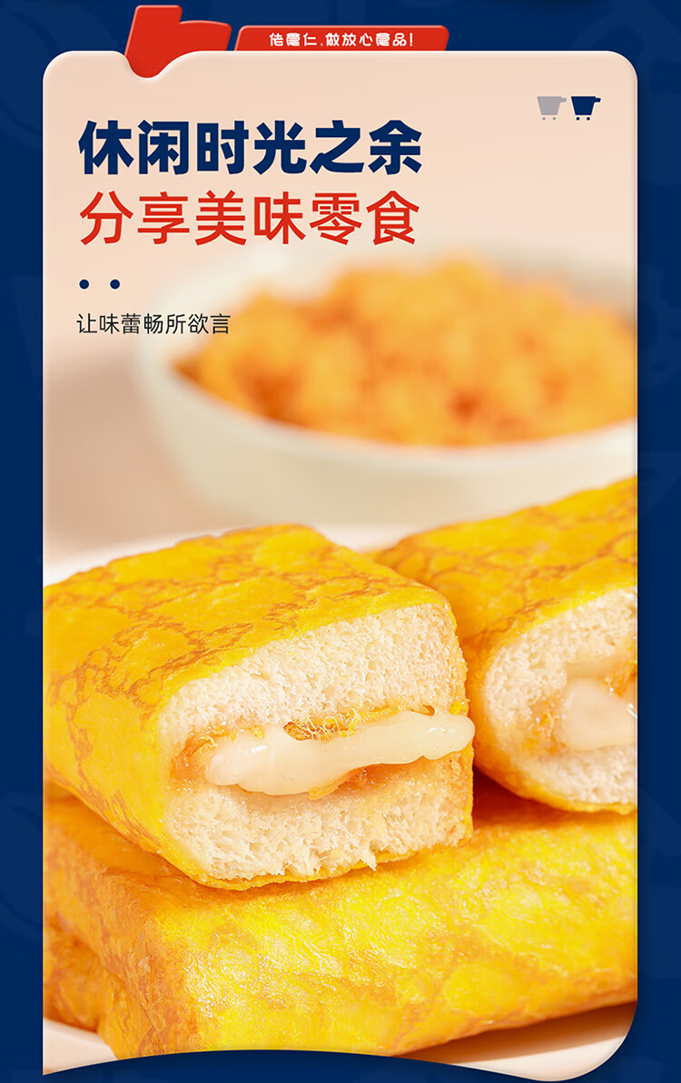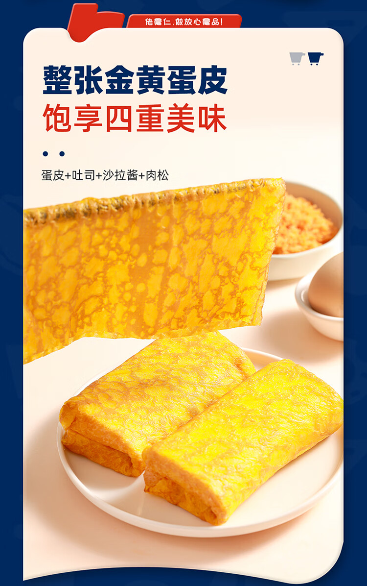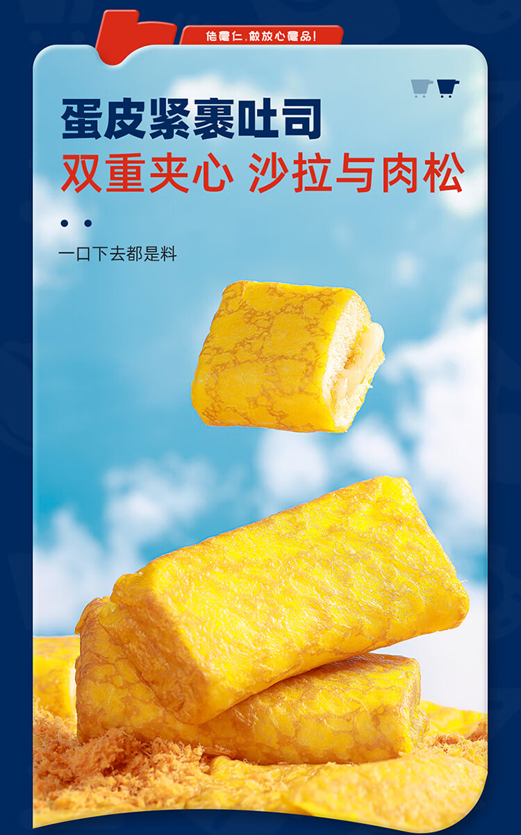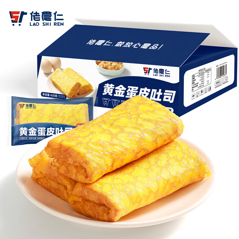 佬食仁 金蛋皮吐司 肉松沙拉夹心煎烤蛋皮方便早餐下午茶420g/约7包 自营