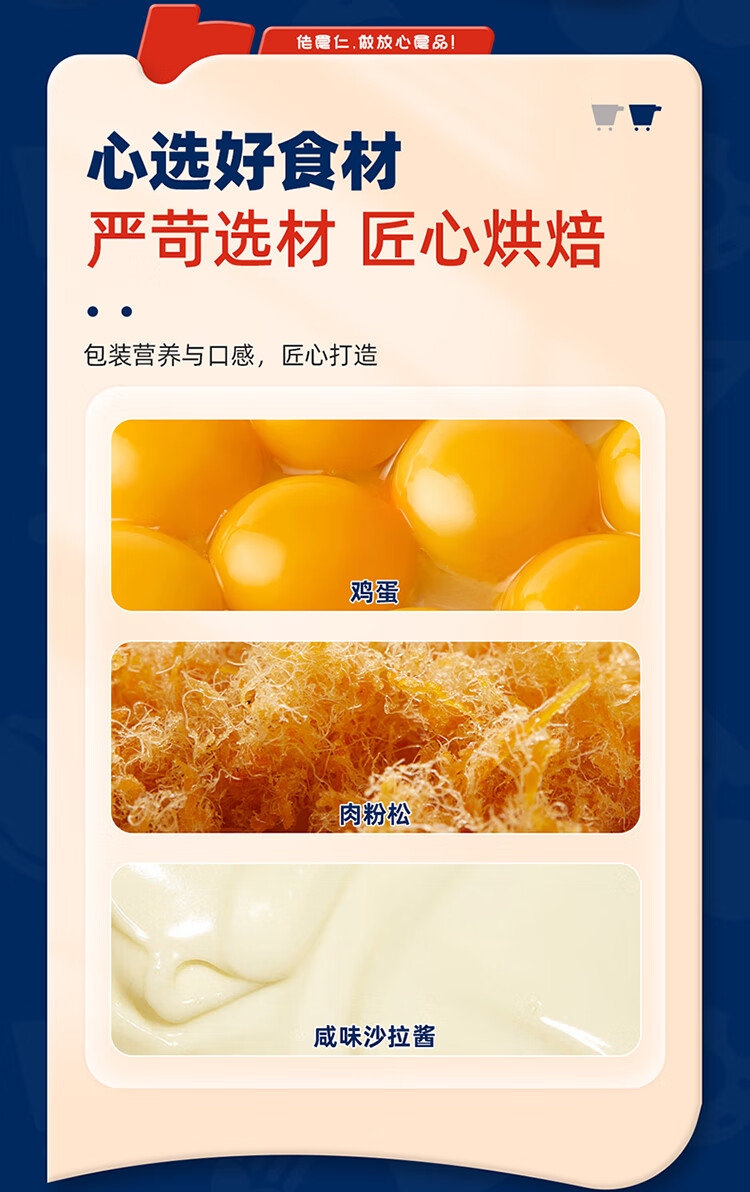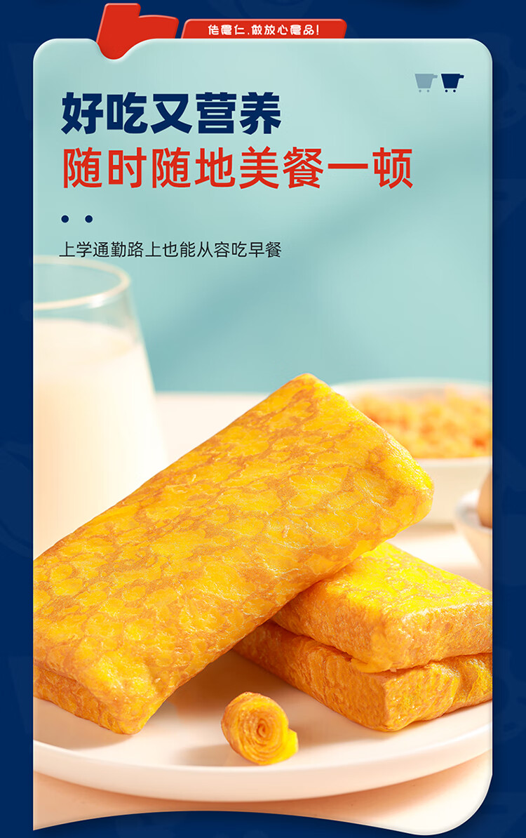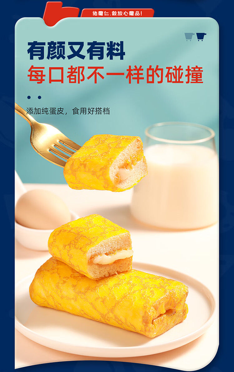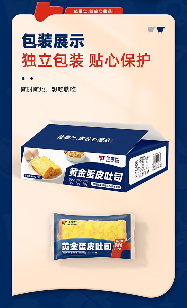 佬食仁 金蛋皮吐司 肉松沙拉夹心煎烤蛋皮方便早餐下午茶420g/约7包 自营