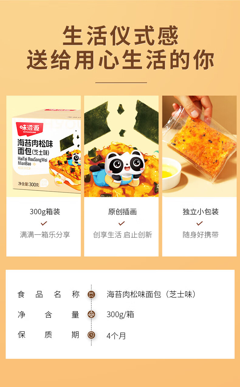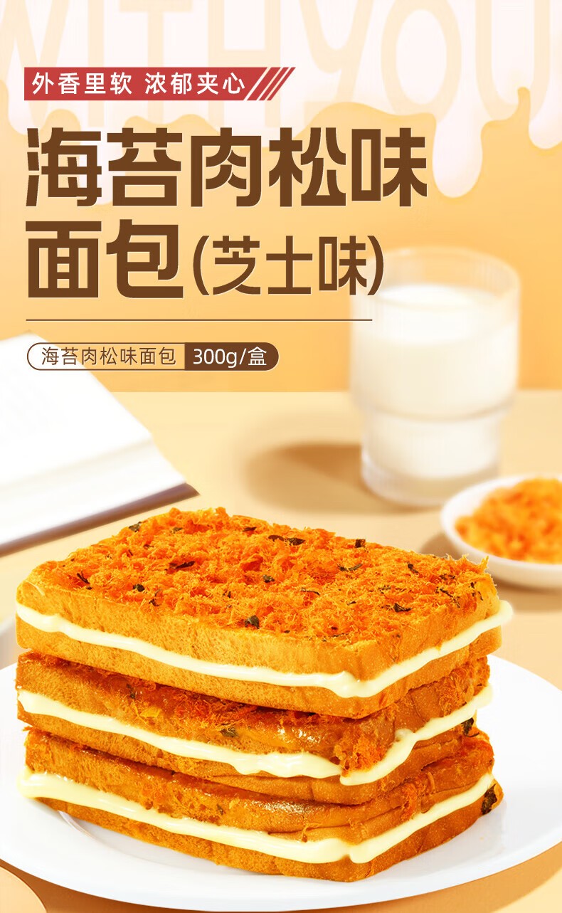 味滋源 乳酸菌小口袋夹心面包休闲零食早餐食品乳酸菌小口袋面包300g×2箱