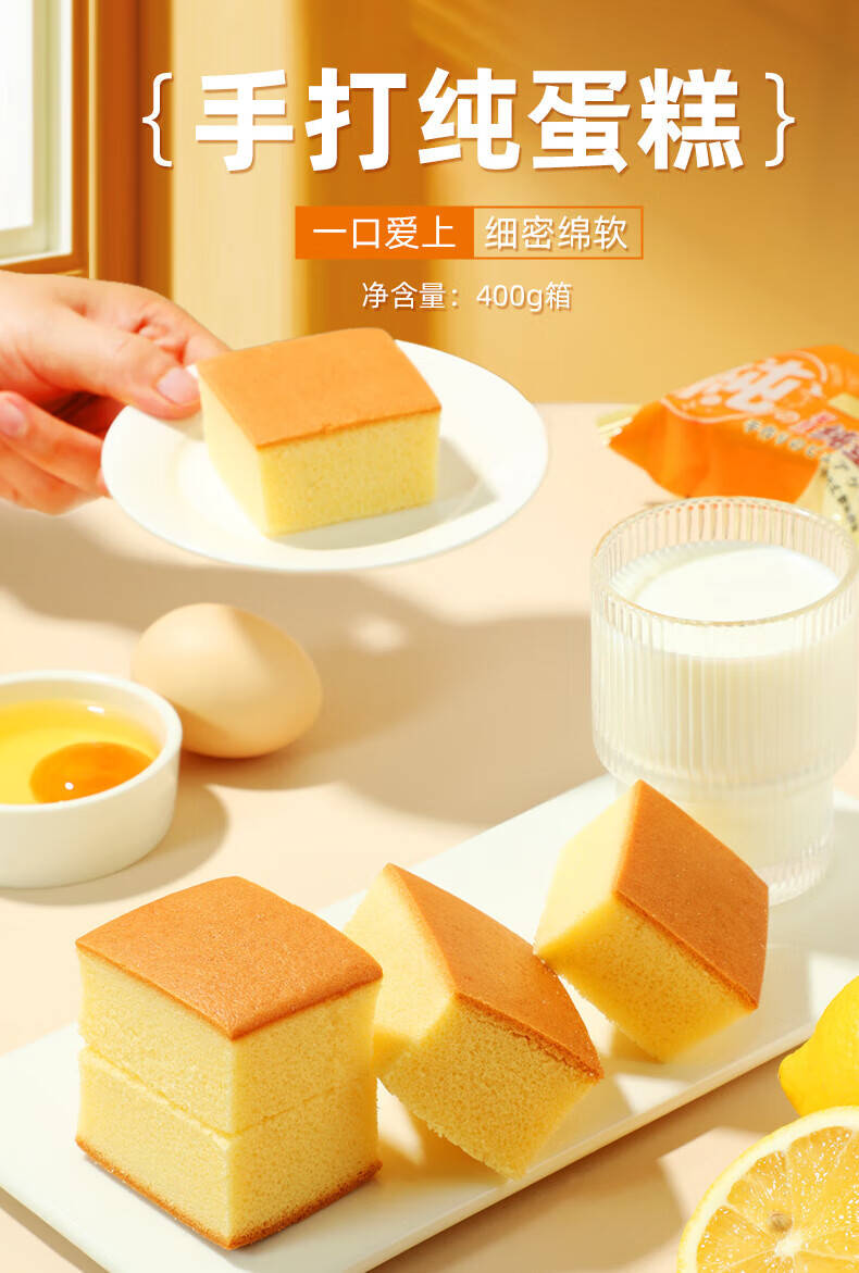 味滋源 整箱鸡蛋糕手打纯蛋糕早餐食品糕点心面包 纯蛋糕400g×2箱 自营