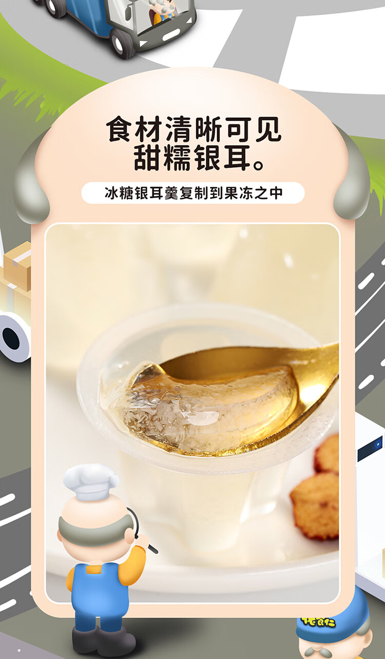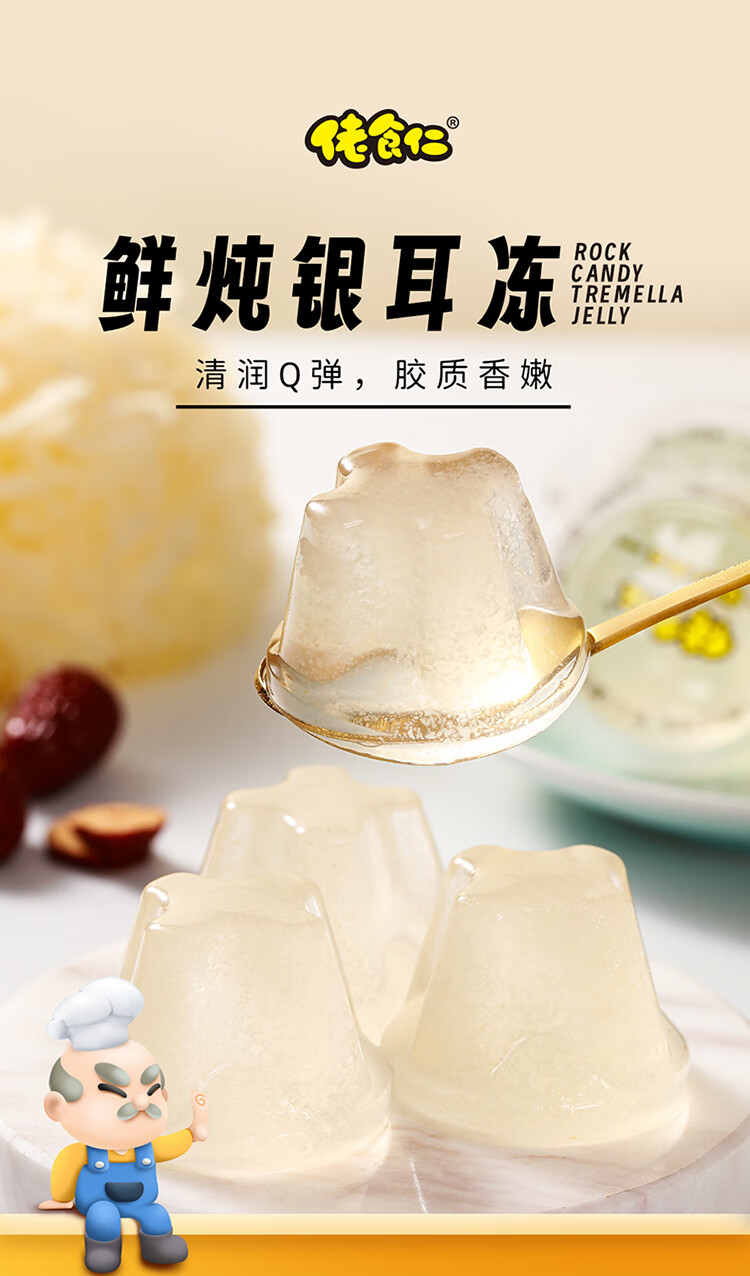 佬食仁 鲜炖银耳冻 0脂肪果冻解馋休闲小零食 450g/约20枚 1箱 DF01 自营