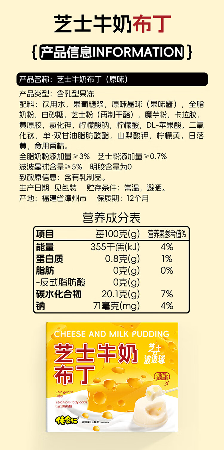 佬食仁 芝士牛奶布丁 爆珠奶酪棒 436g/约20杯 1箱 DF01 自营