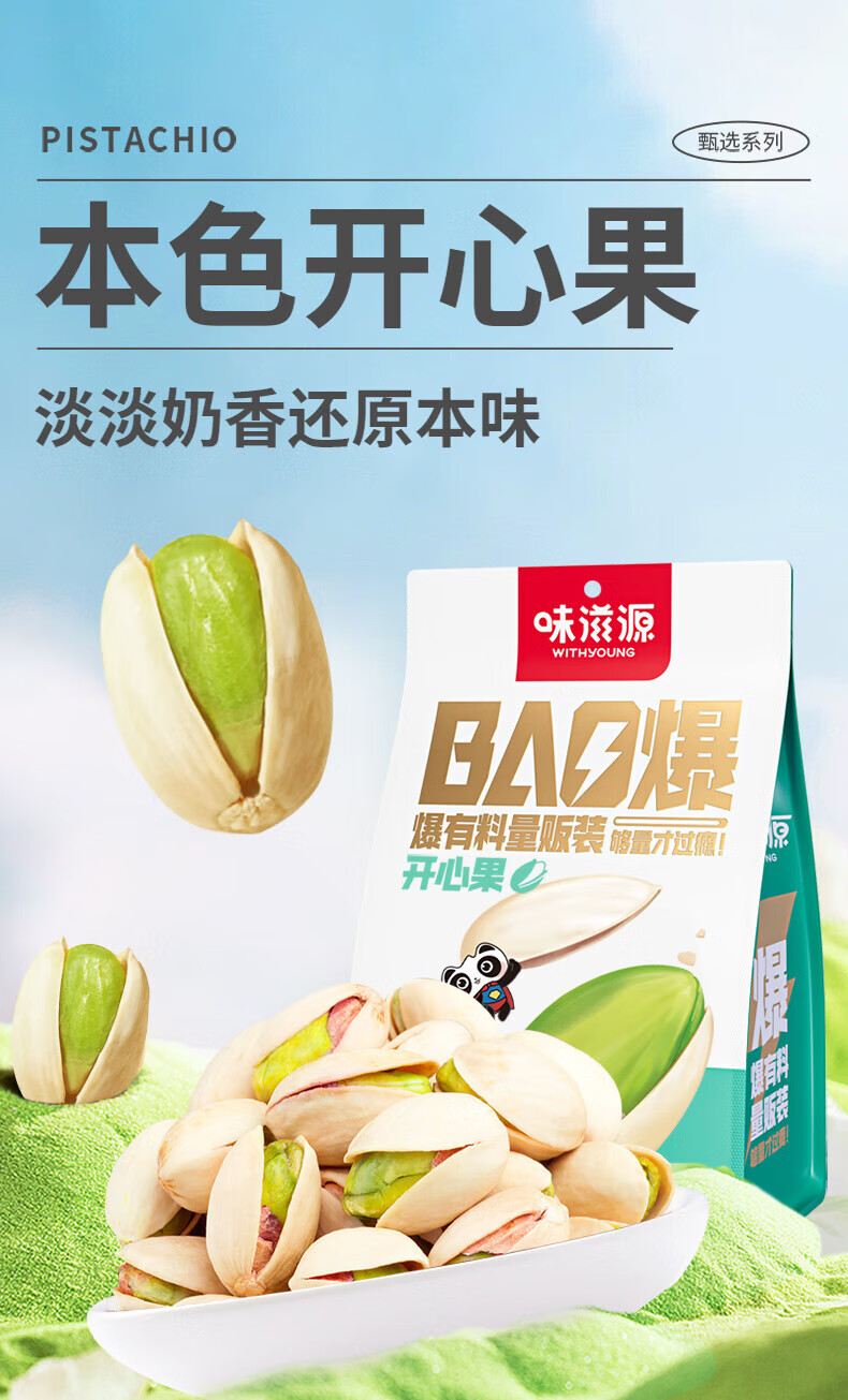 味滋源 开心果 坚果炒货干果办公室休闲零食 开心果60g/袋 3袋 自营