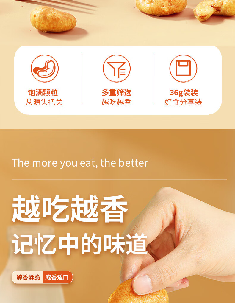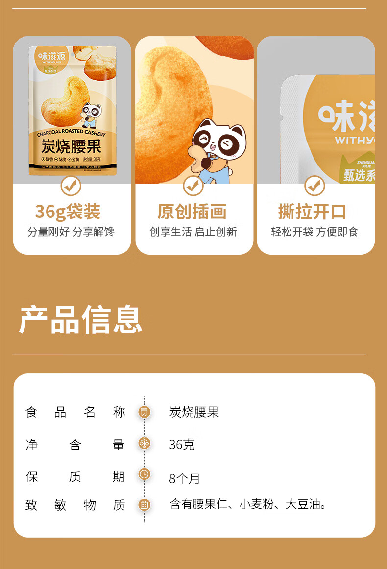 味滋源 炭烧腰果 坚果炒货干果办公室休闲零食 炭烧腰果36g袋 3袋 自营