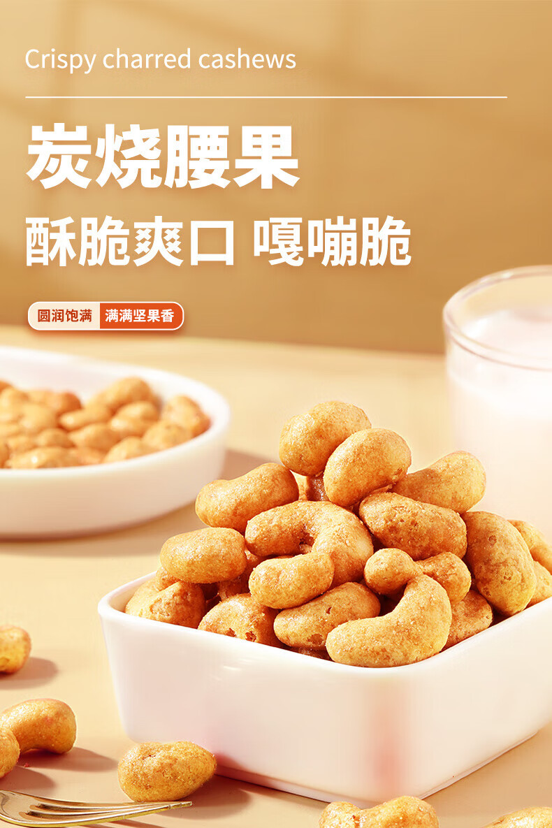 味滋源 炭烧腰果 坚果炒货干果办公室休闲零食 炭烧腰果500g袋 1袋 自营