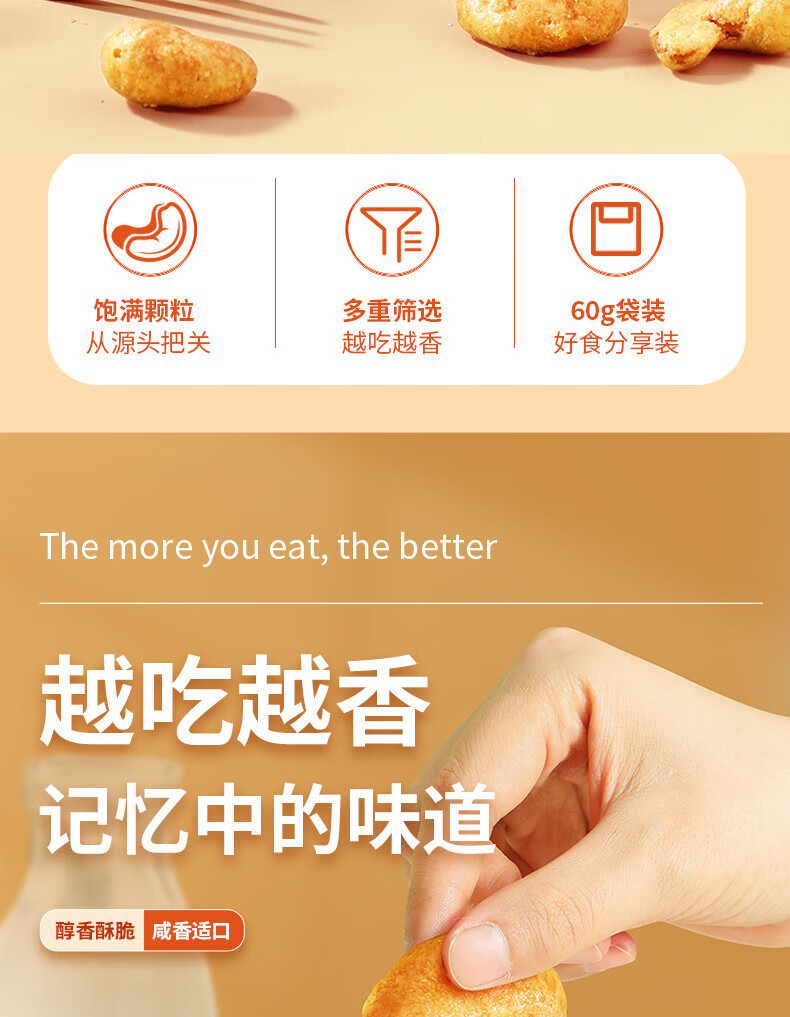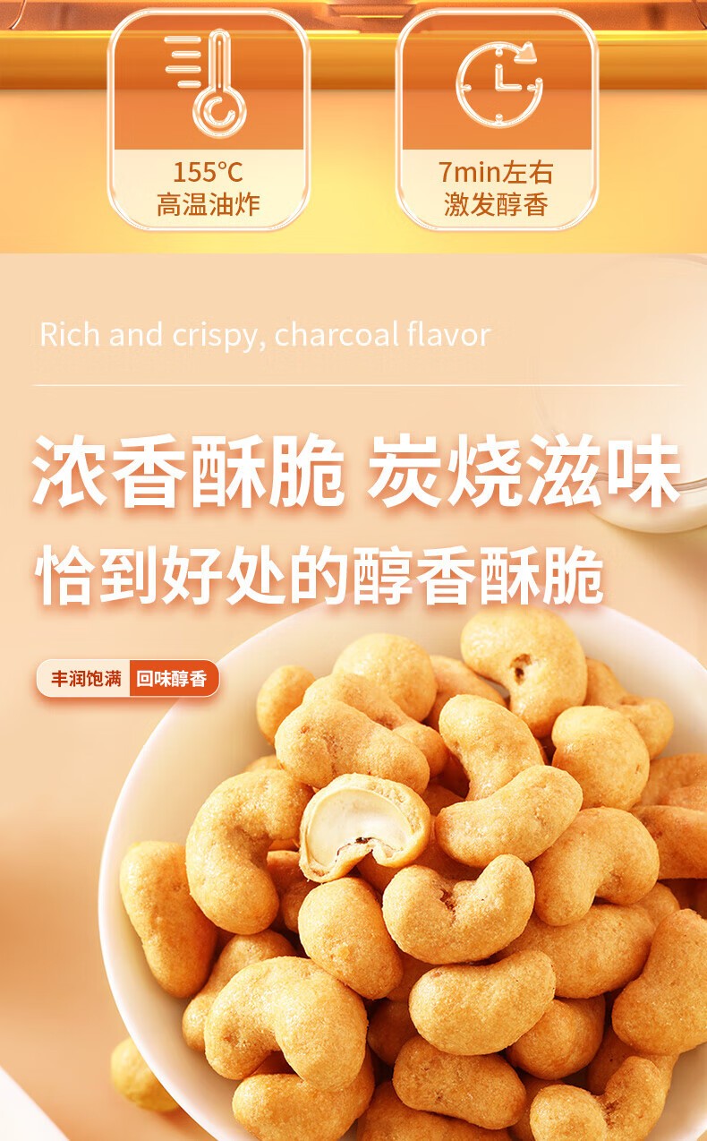 味滋源 炭烧腰果 坚果炒货干果办公室休闲零食 炭烧腰果60g袋 3袋 自营