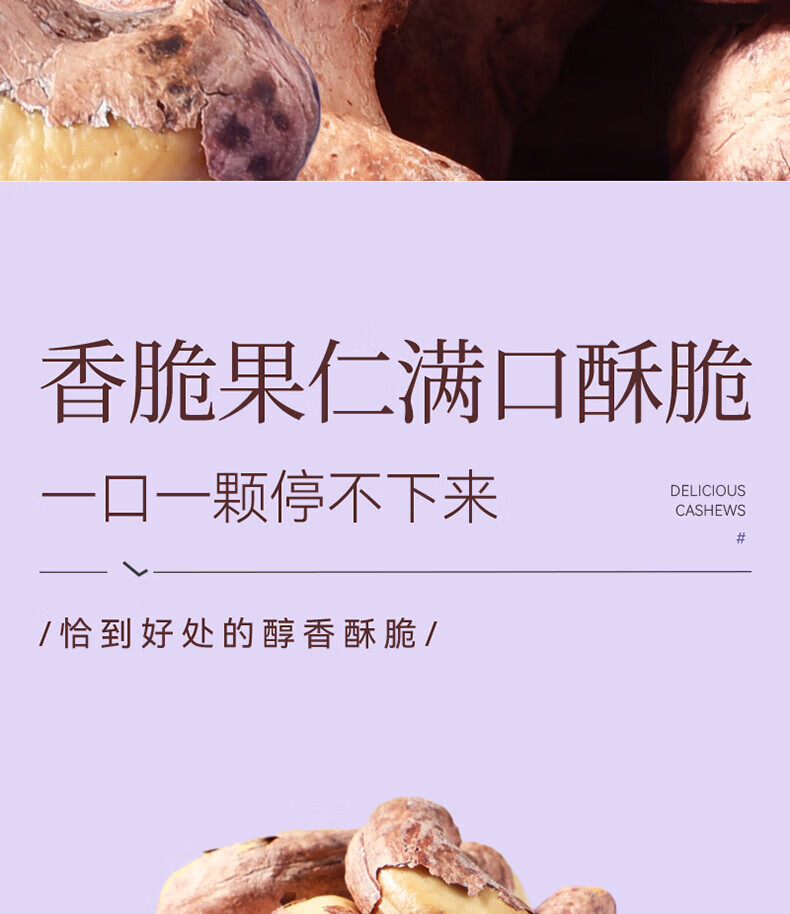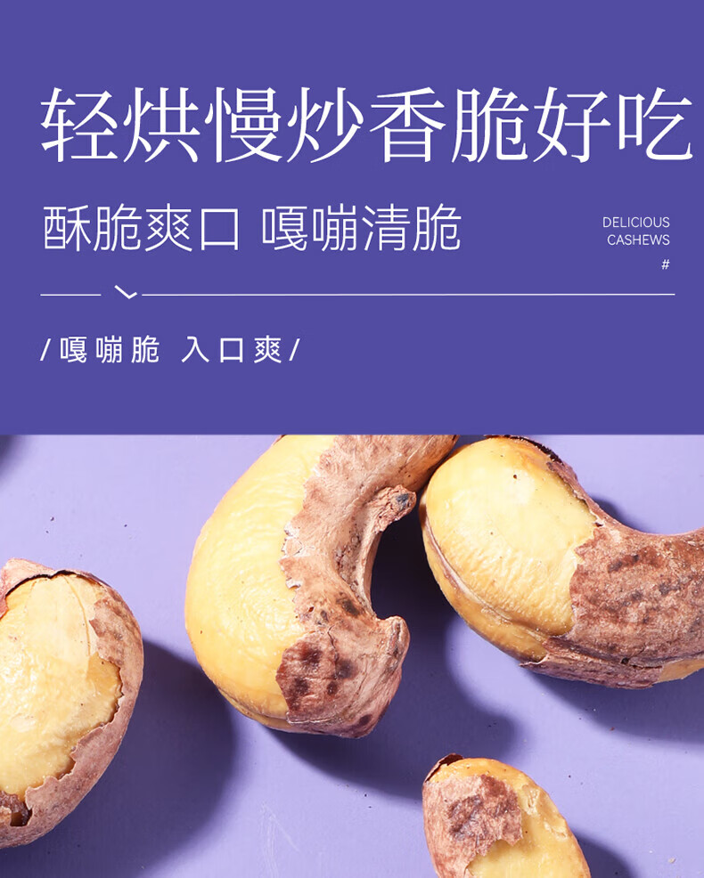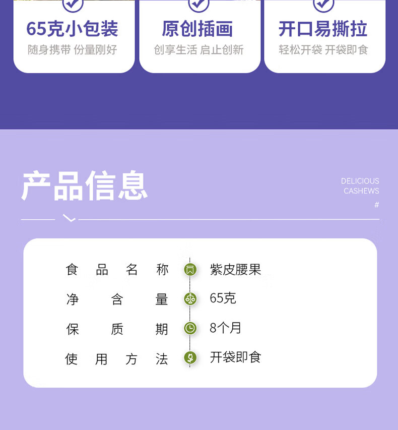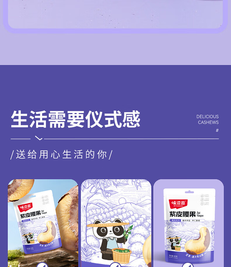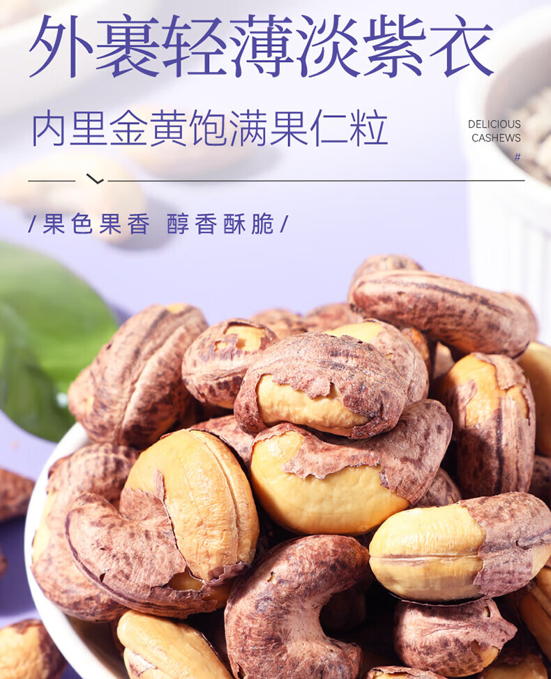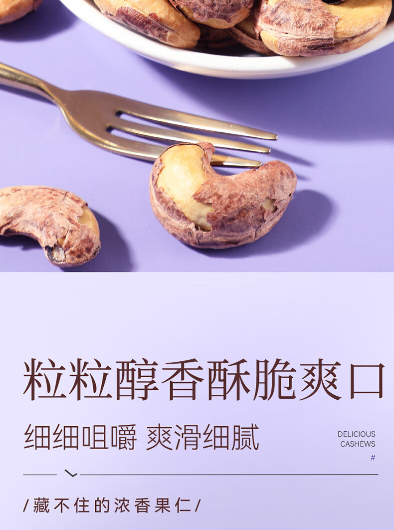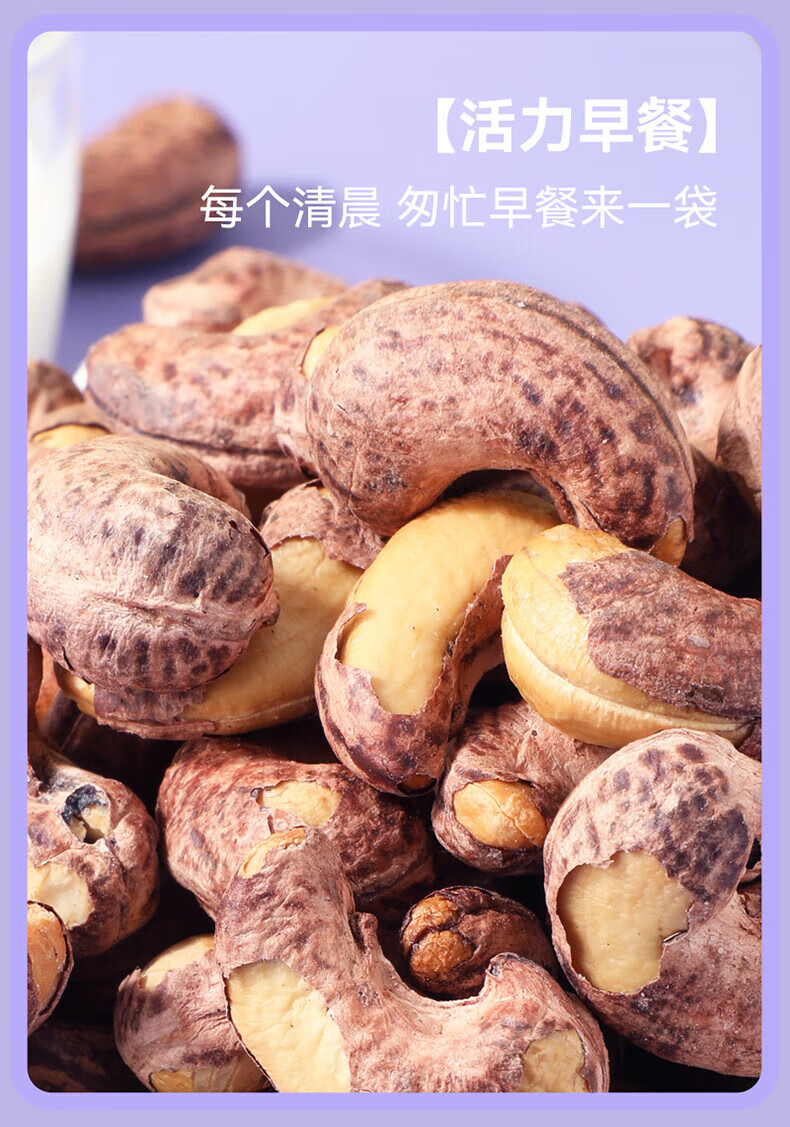 味滋源 原味紫皮腰果 坚果炒货干果办公室休闲零食 紫皮腰果65g/袋 3袋 自营