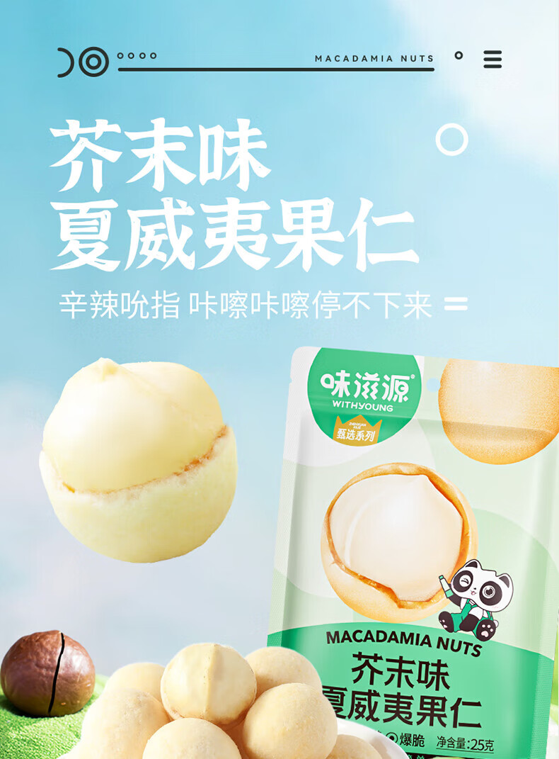 味滋源 芥末味夏威夷果仁 坚果炒货办公室休闲零食 夏威夷果仁25g/袋 3袋 自营