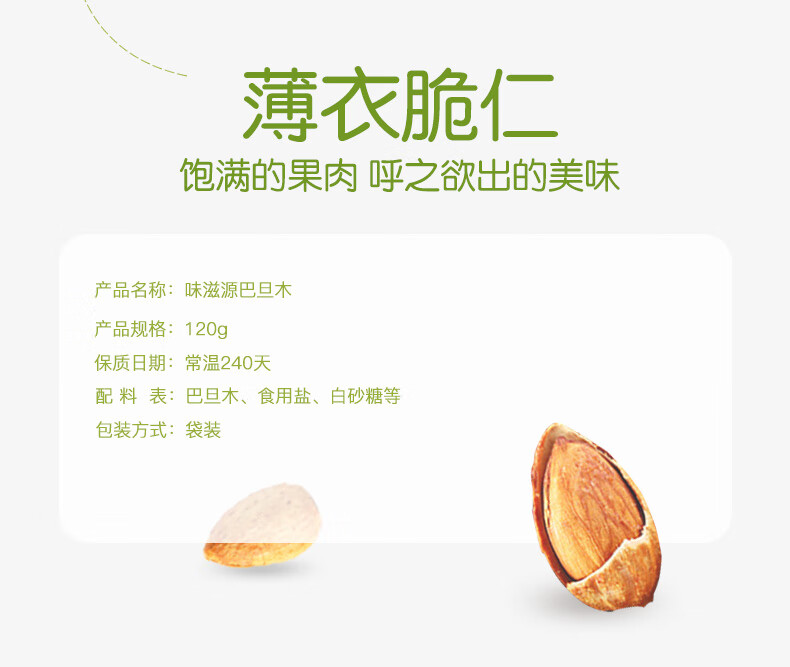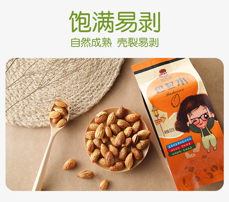味滋源 巴旦木 坚果炒货干果办公室休闲零食 巴旦木120g/袋 2袋 自营