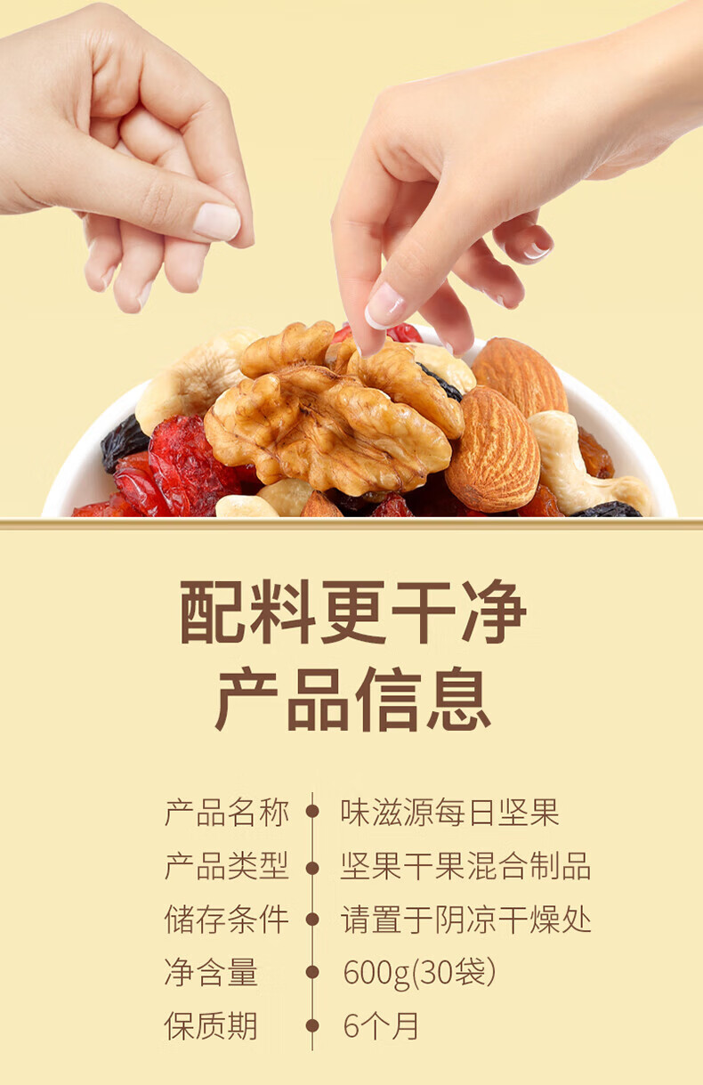 味滋源 每日坚果 坚果炒货干果办公室休闲零食 每日坚果600g/30袋/箱 1箱