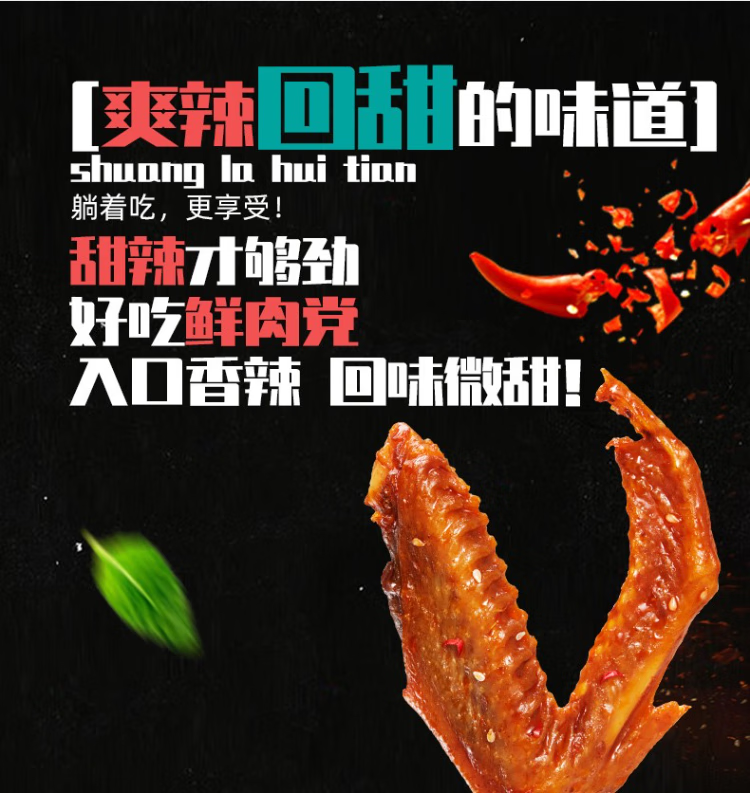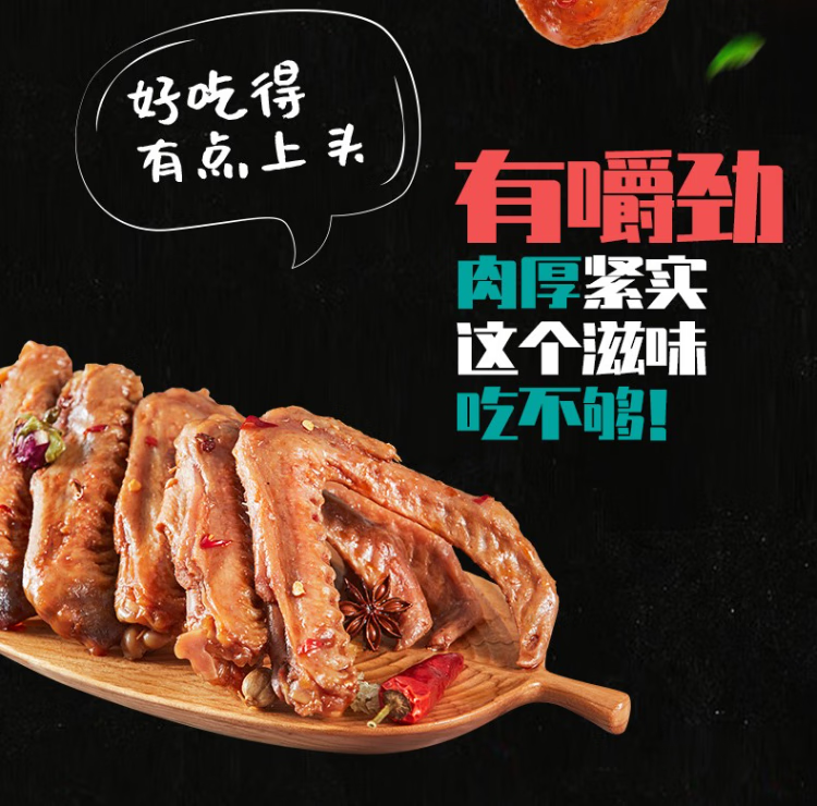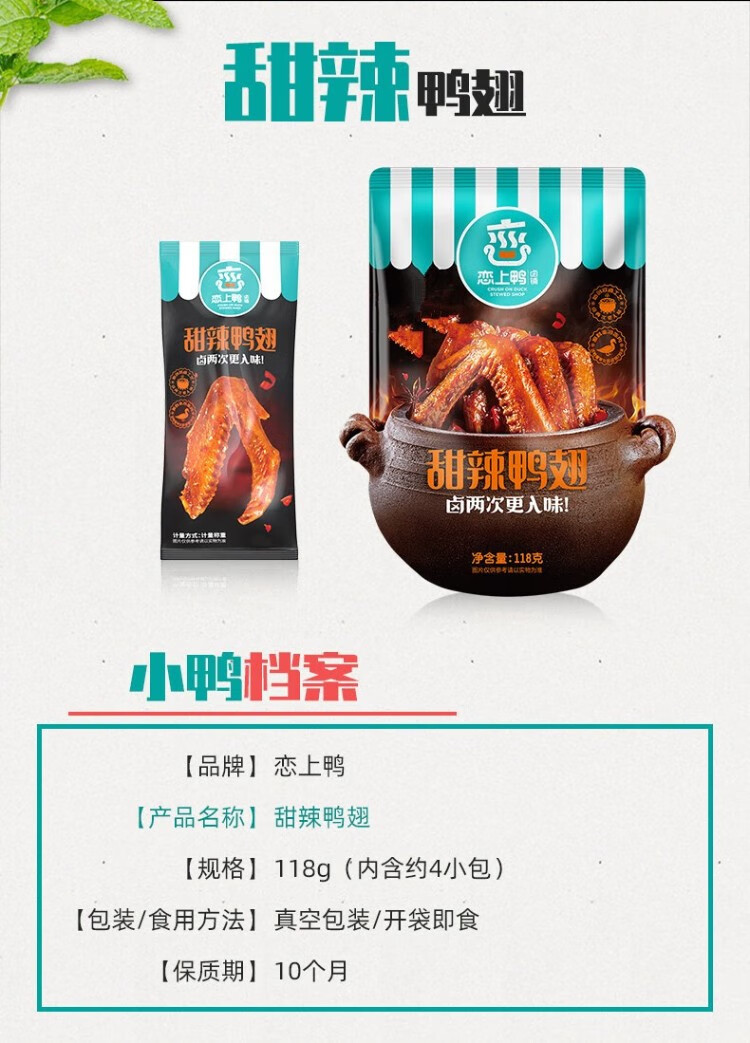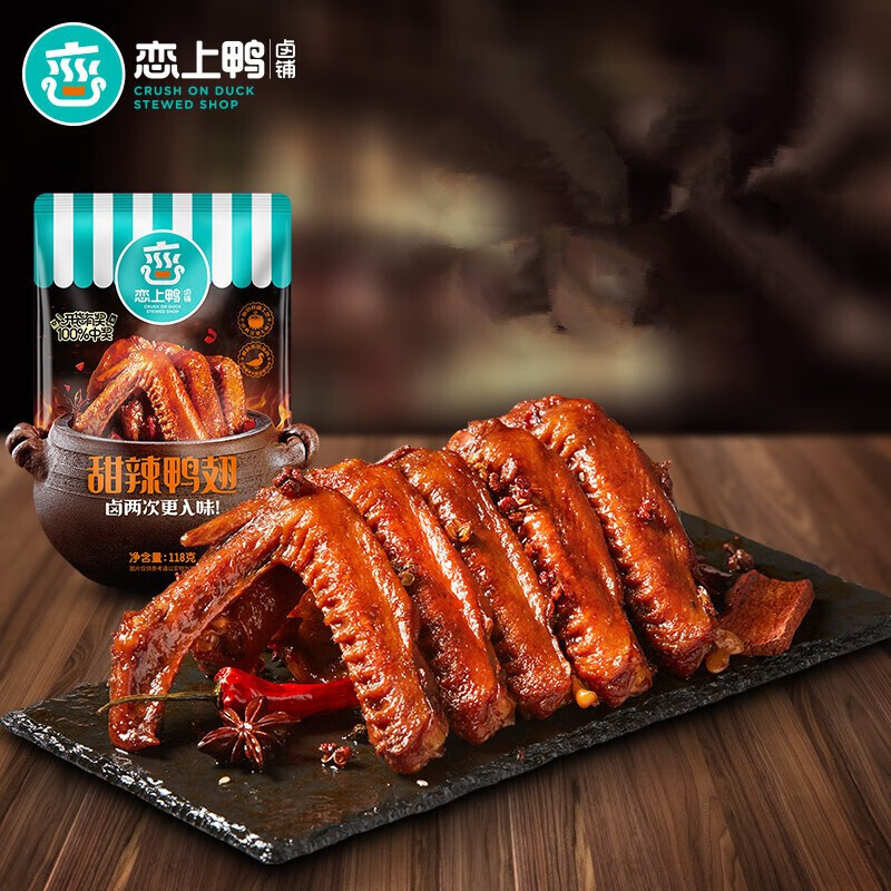 恋上鸭 甜辣鸭翅 鲜肉双卤 爽辣回甜 独立真空小包休闲零食118g 自营