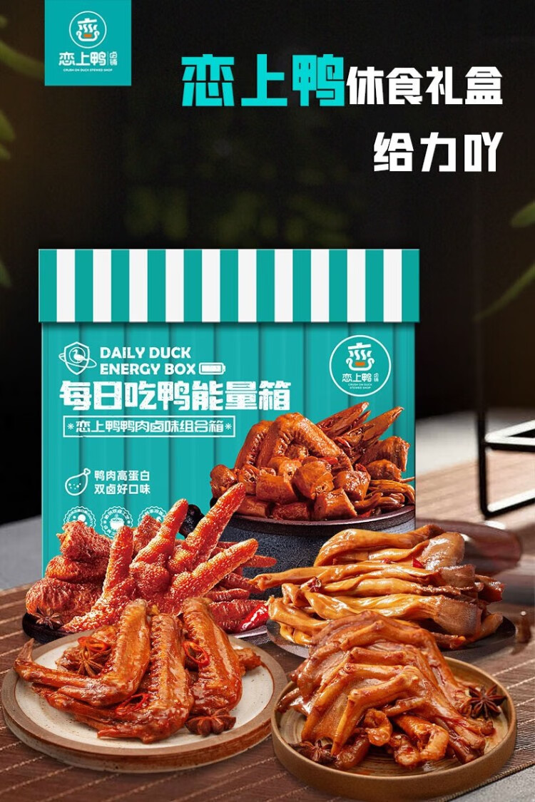 恋上鸭 休食礼盒-给力吖 鲜肉双卤 爽辣回甜 1060g 自营
