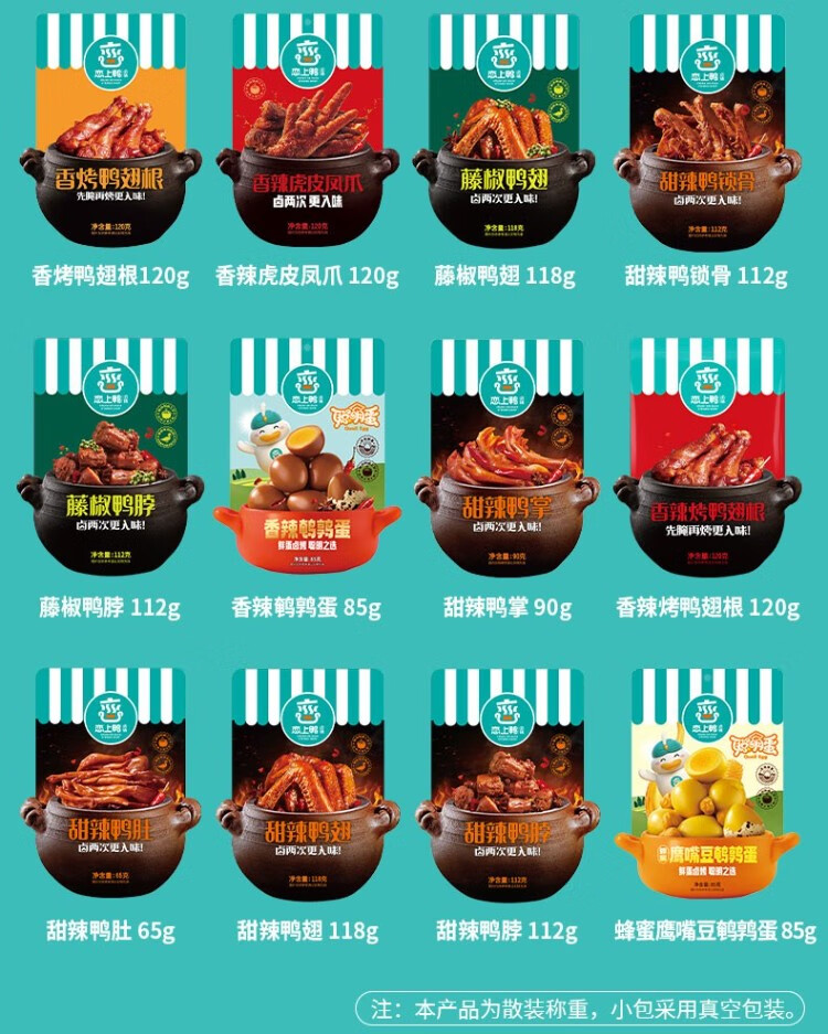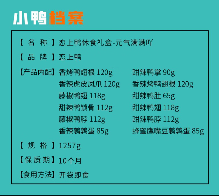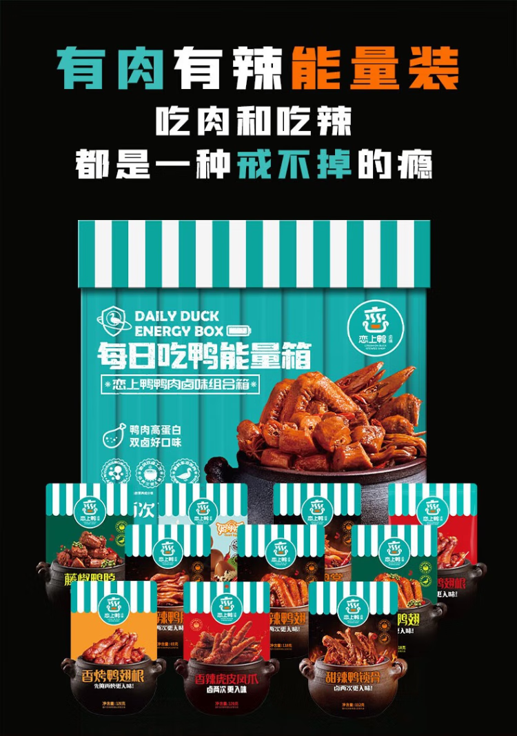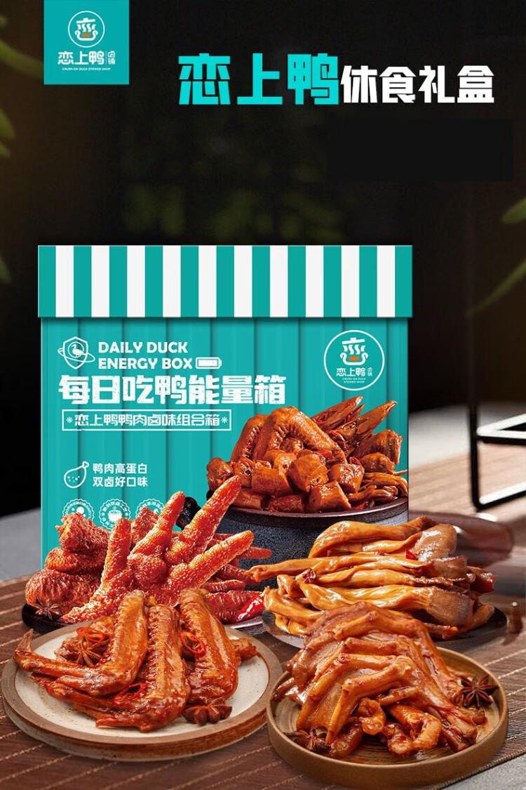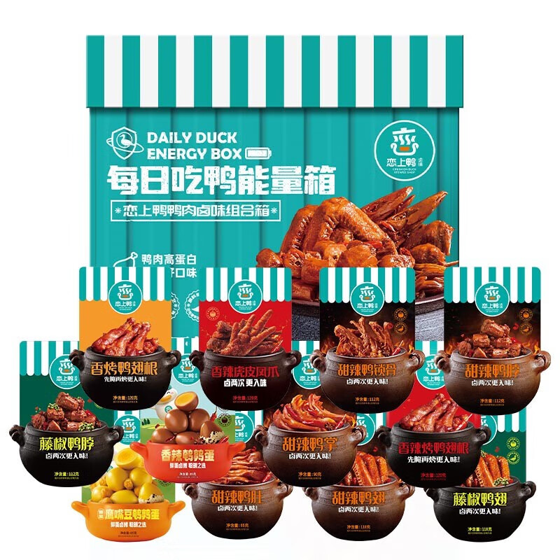 恋上鸭 休食礼盒-元气满满吖 鲜肉双卤 爽辣回甜1257g 自营