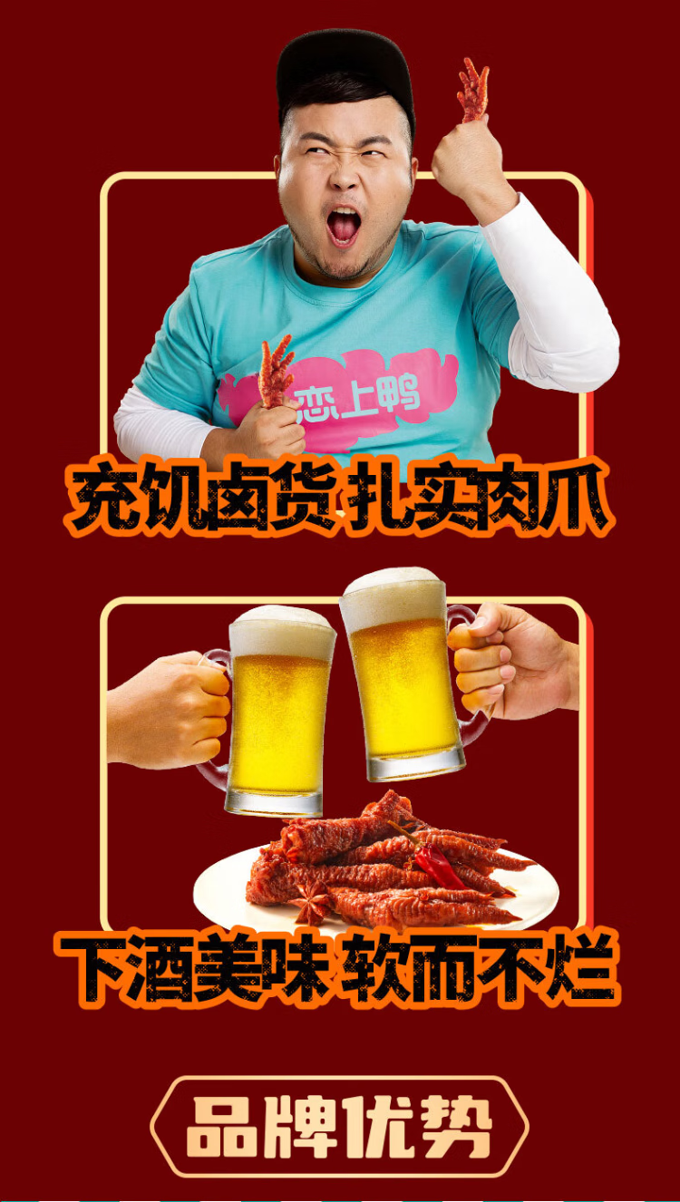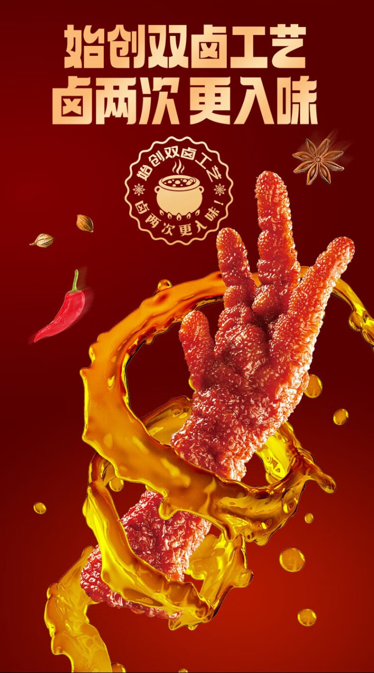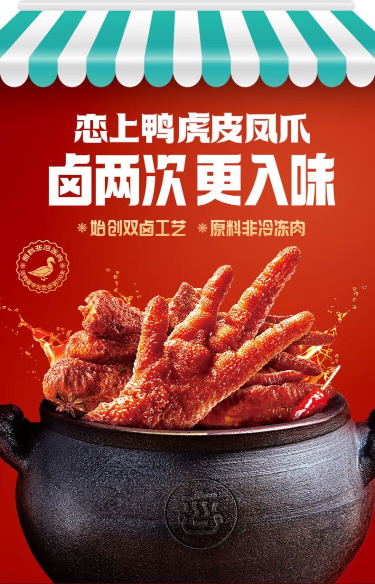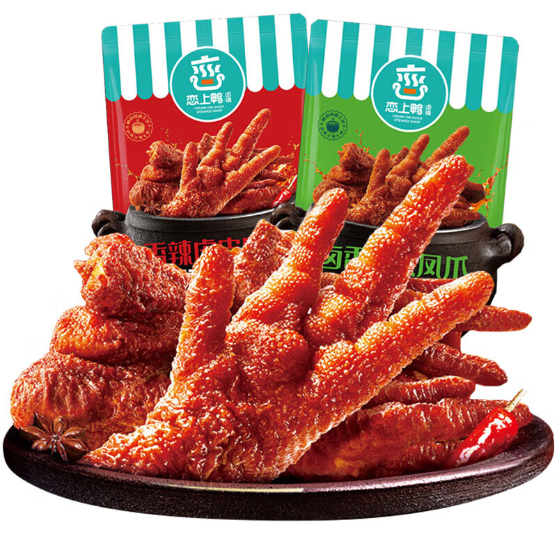 恋上鸭 香辣虎皮凤爪 优选大爪 双卤工艺 独立真空小包休闲零食120g 自营