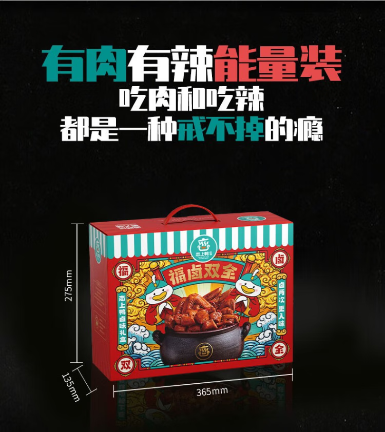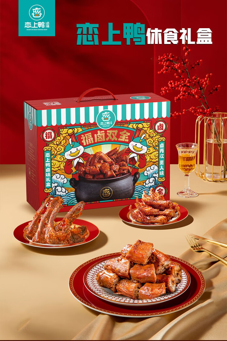 恋上鸭 休食礼盒-加油吖 鲜肉双卤 爽辣回甜 877g 自营