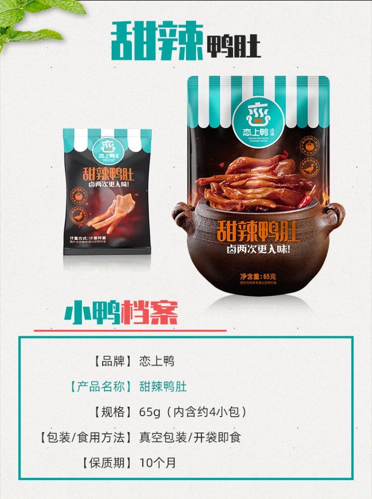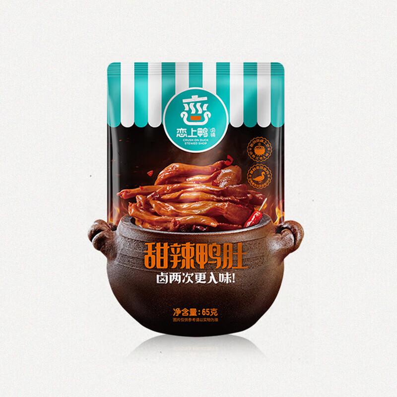 恋上鸭 甜辣鸭肚 鲜肉双卤 爽辣回甜 独立真空小包休闲零食65g 自营
