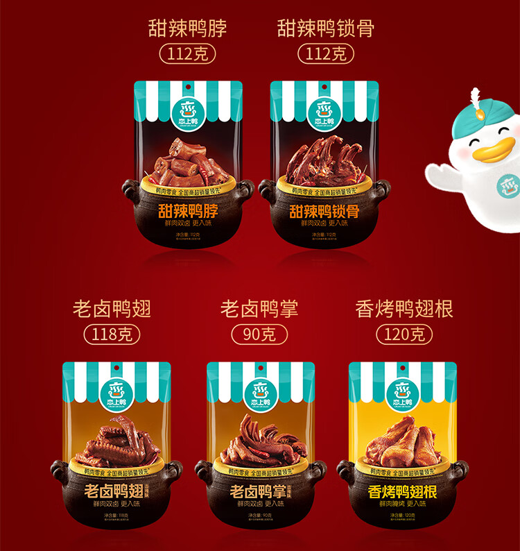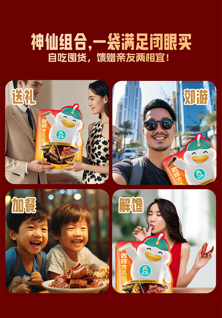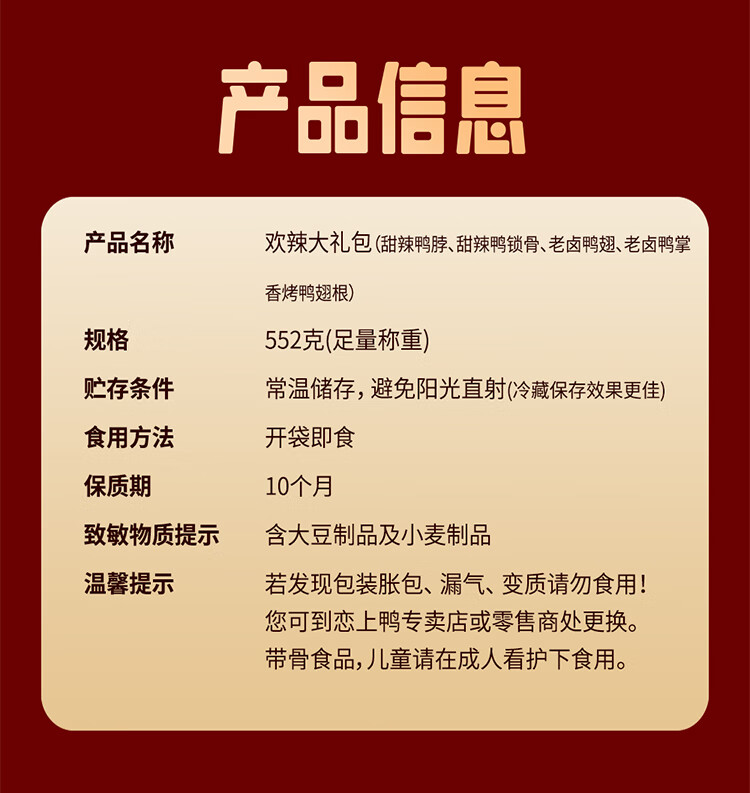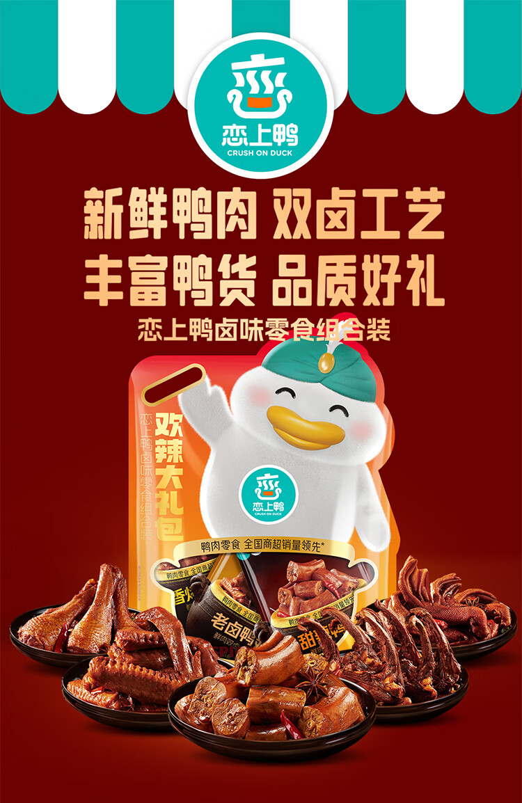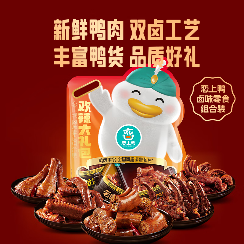 恋上鸭 鸭肉零食大礼包卤味鸭肉类零食网红休食礼包-欢辣大礼包 552g 1袋 自营