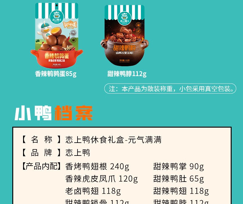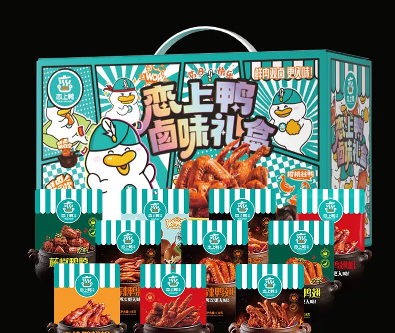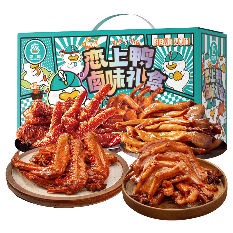 恋上鸭 鸭肉零食礼盒鸭肉卤味年货送礼休闲零食元气满满吖礼盒 1345g 1盒 自营