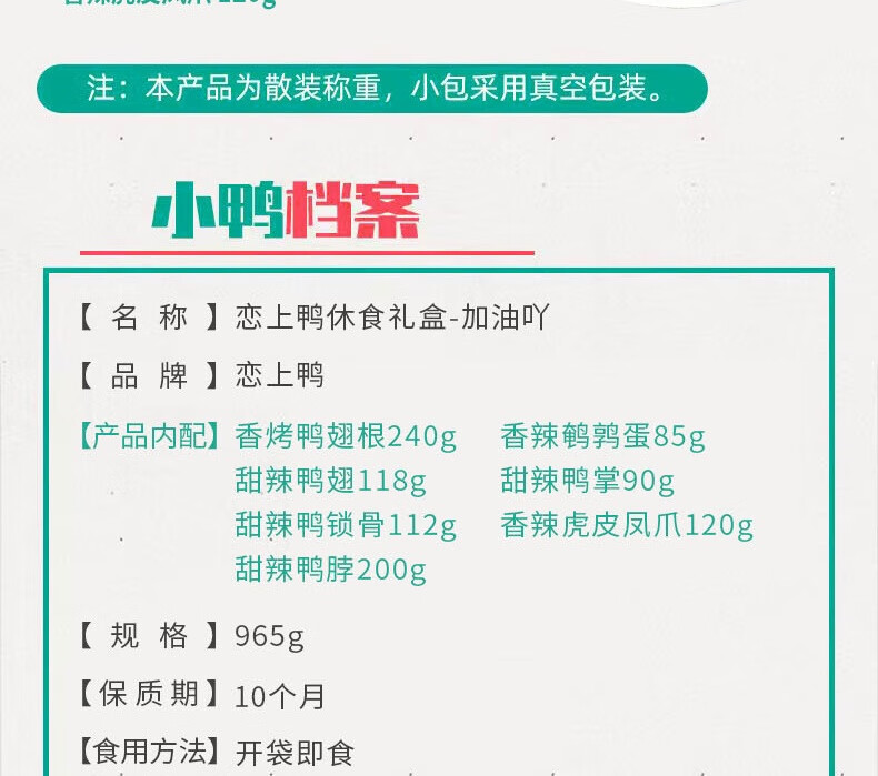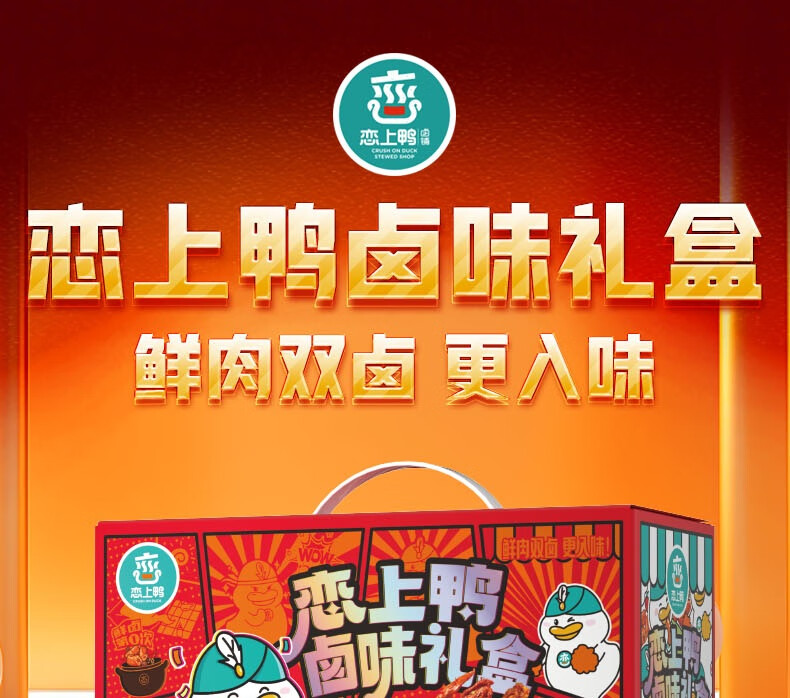 恋上鸭 鸭肉零食礼盒鸭肉卤味组合年货送礼休闲零食-加油吖礼盒 965g 1盒 自营
