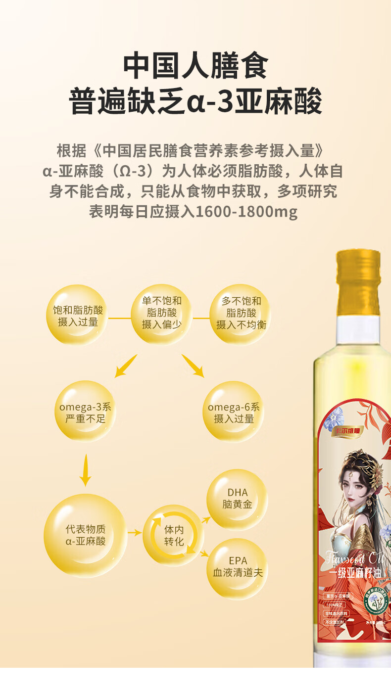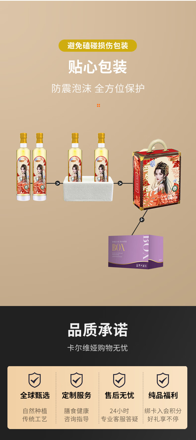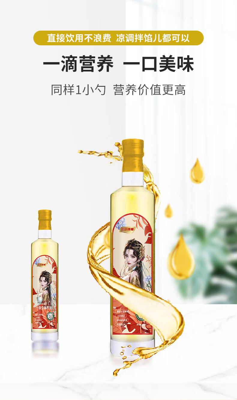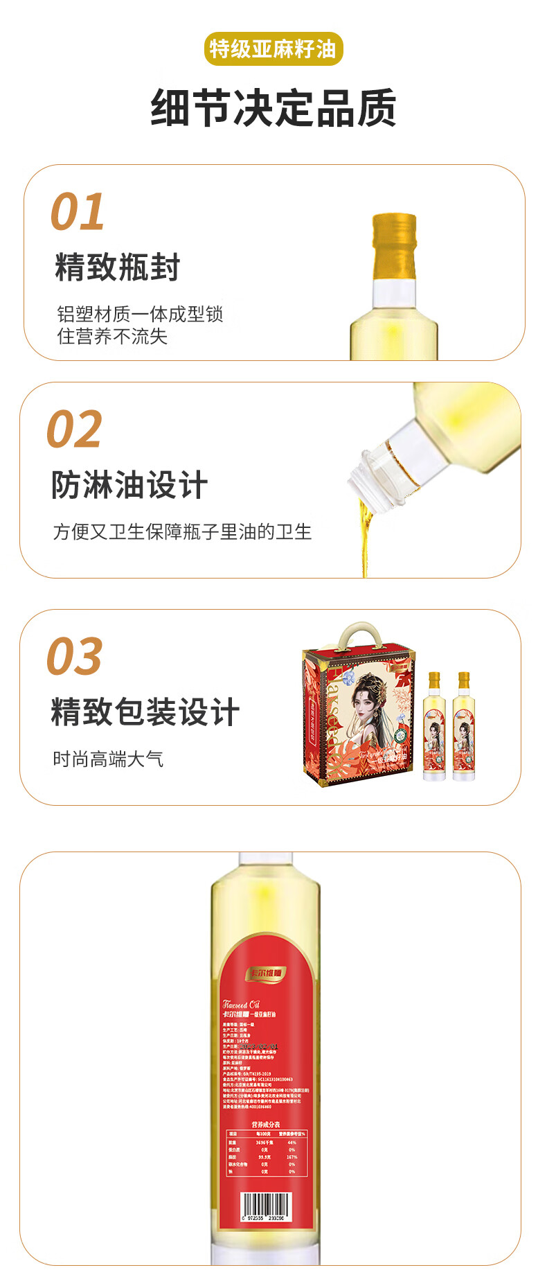 卡尔维娅 一级物理压榨有机亚麻籽食用油礼盒 风情精装750mL*2瓶 1盒 自营