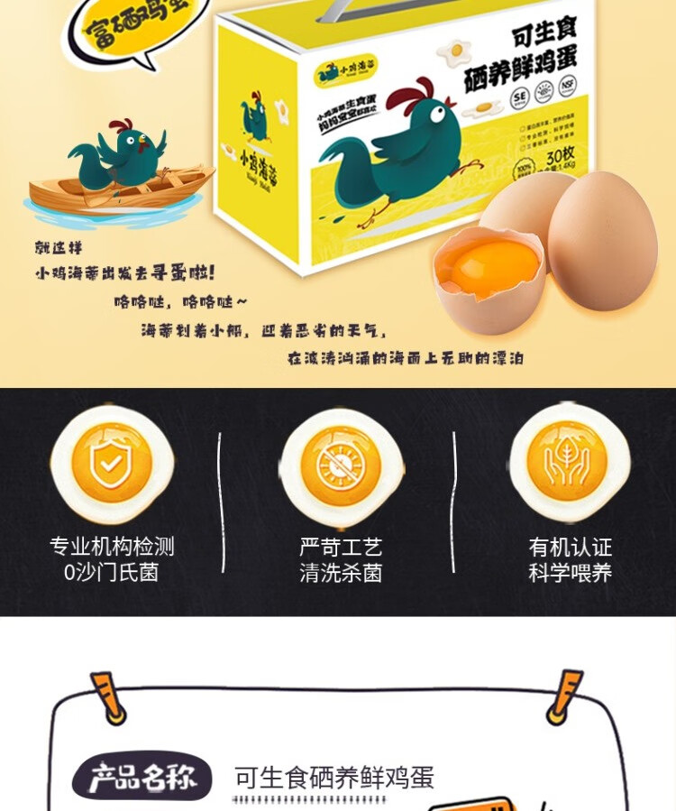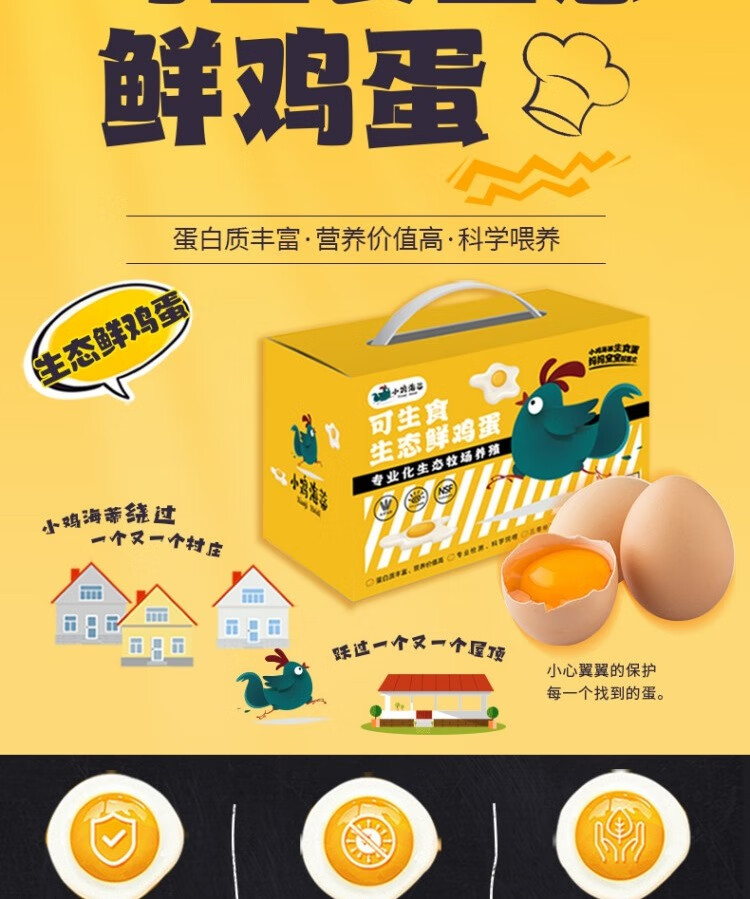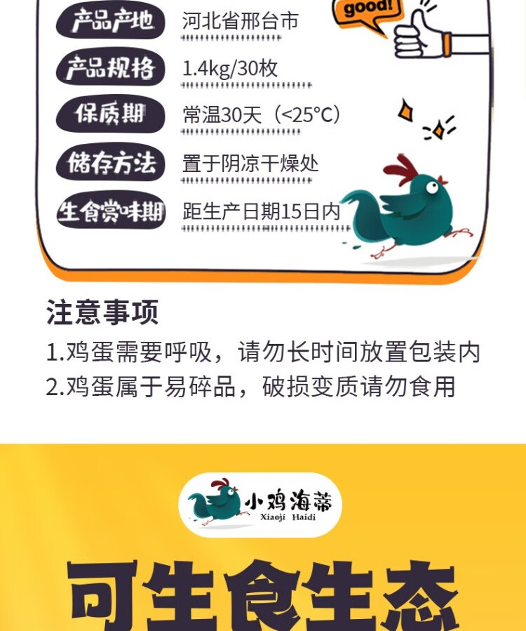小鸡海蒂 不含沙门氏菌可生食标准礼盒装 山养鲜鸡蛋30枚/盒约1450g 自营