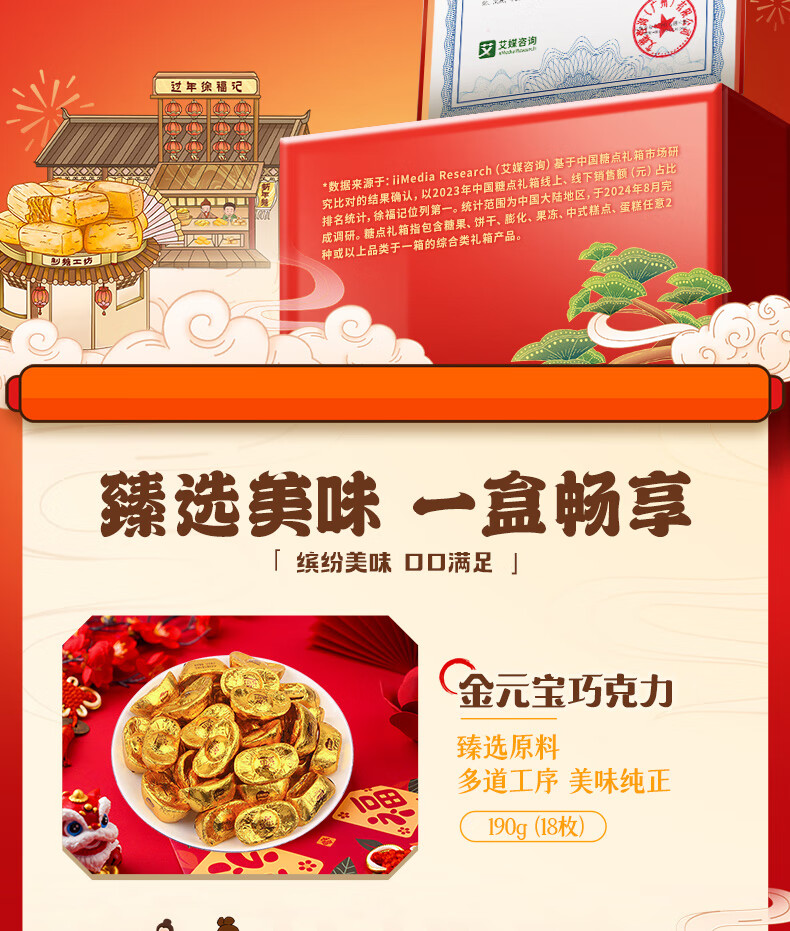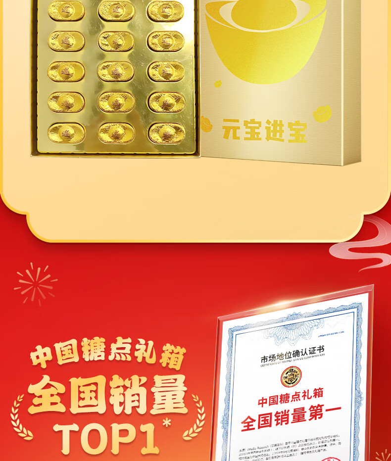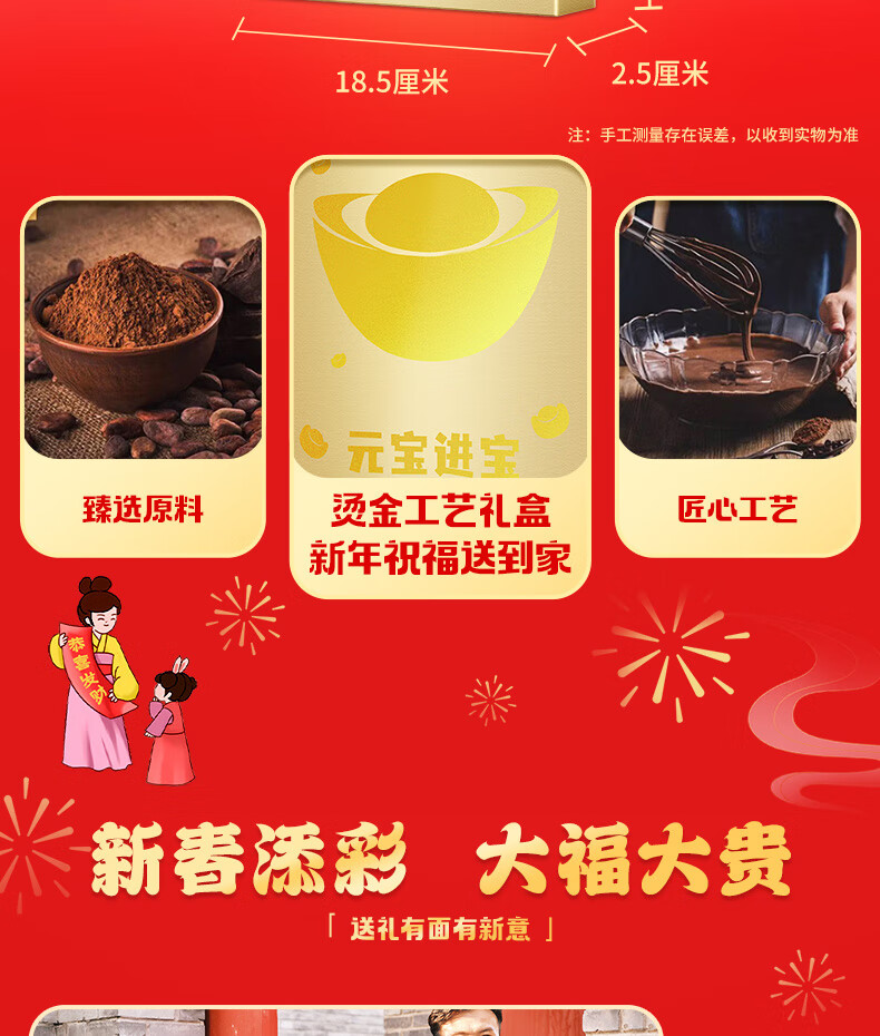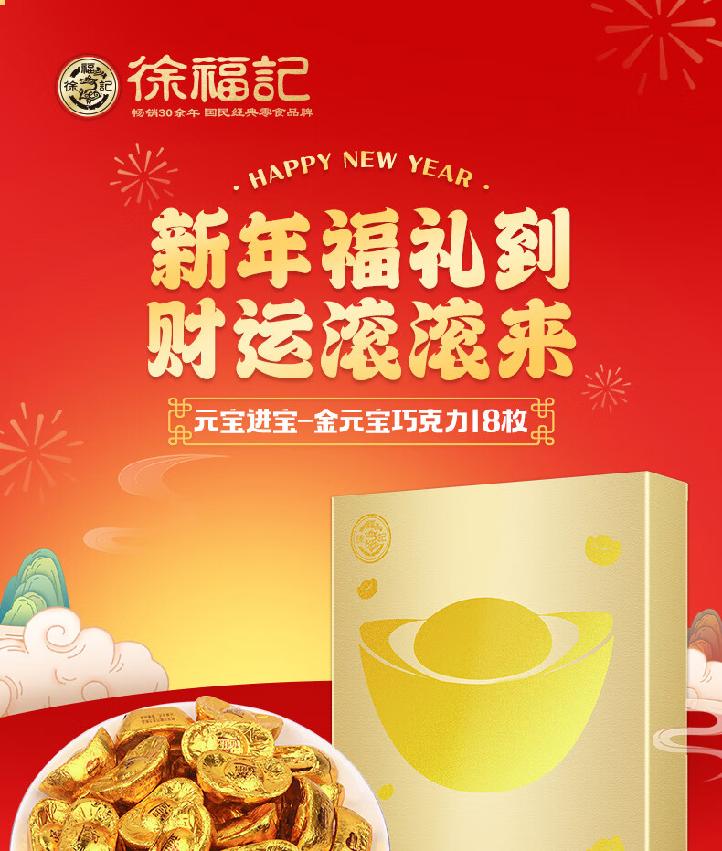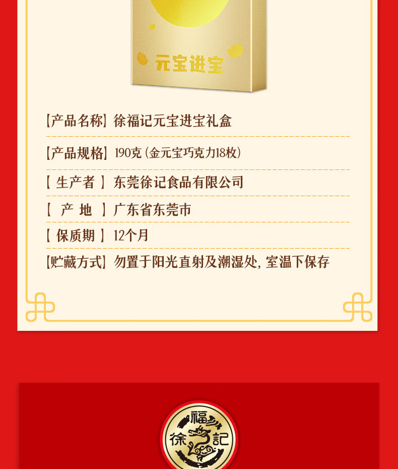 徐福记 元宝进宝巧克力礼盒新年糖果年货礼品休闲零食巧克力18粒 1盒190g 自营