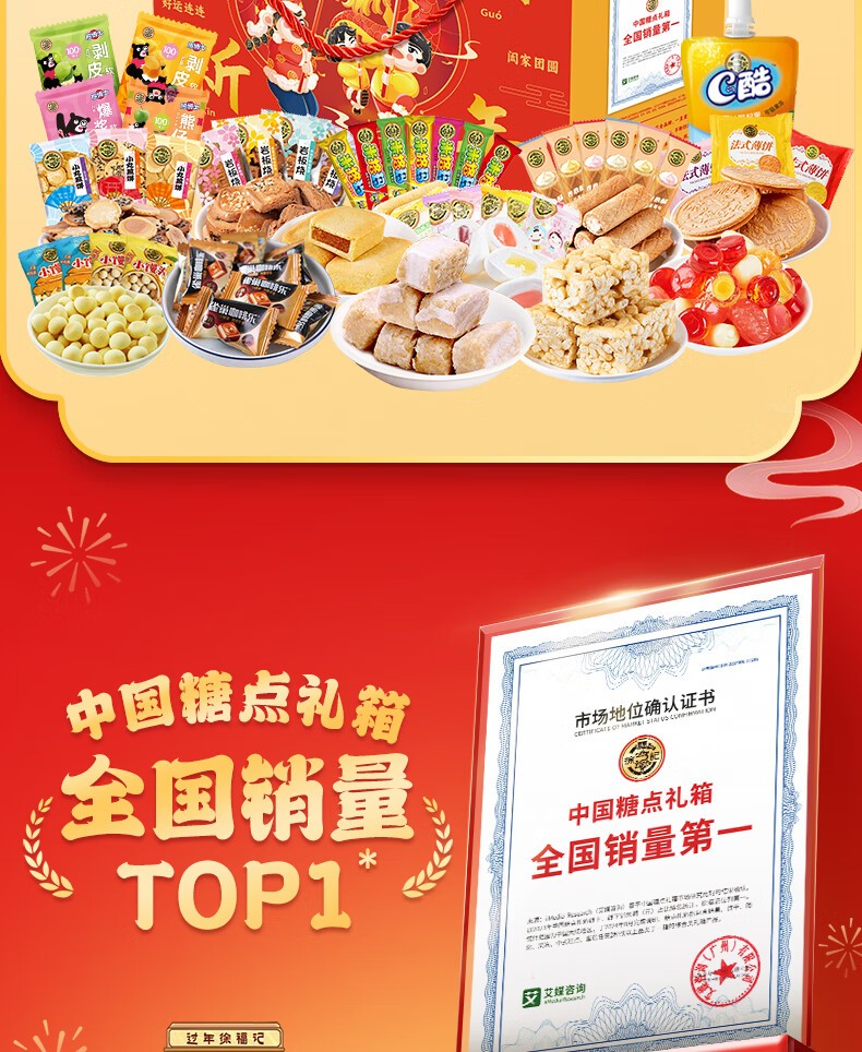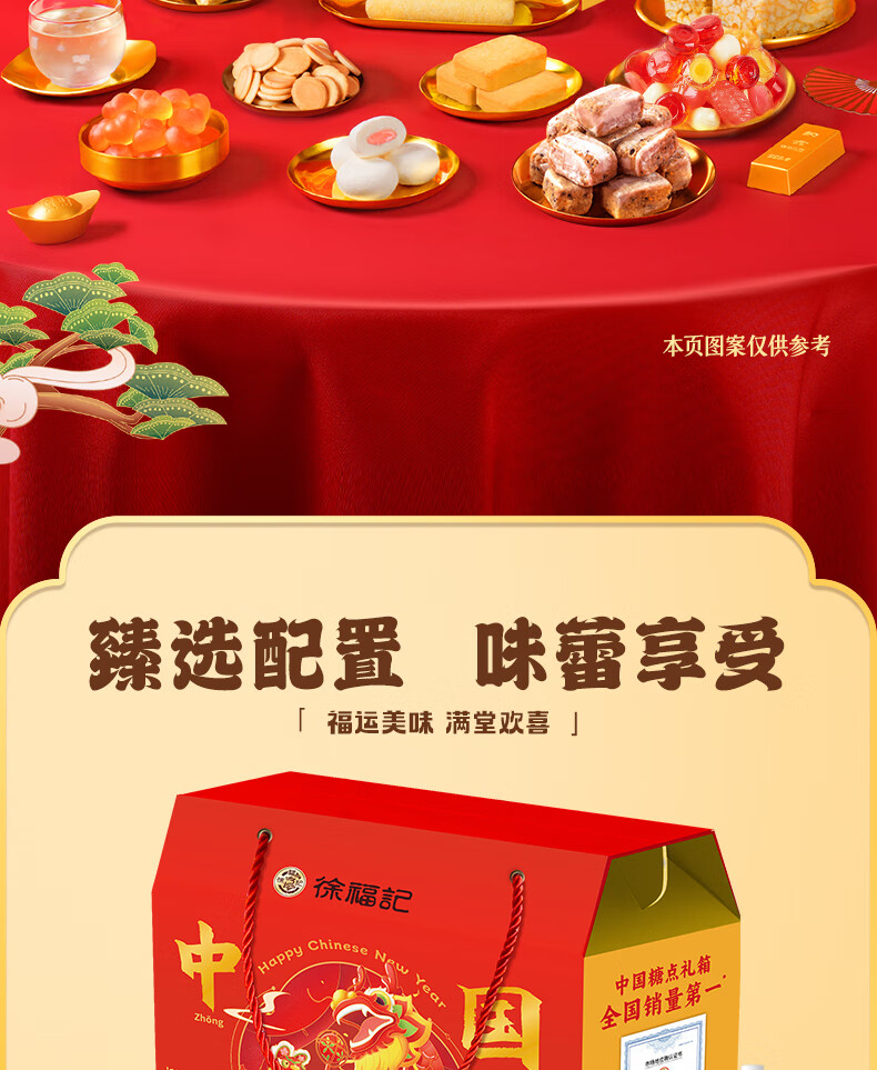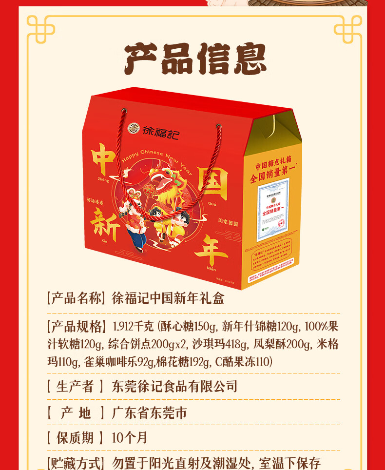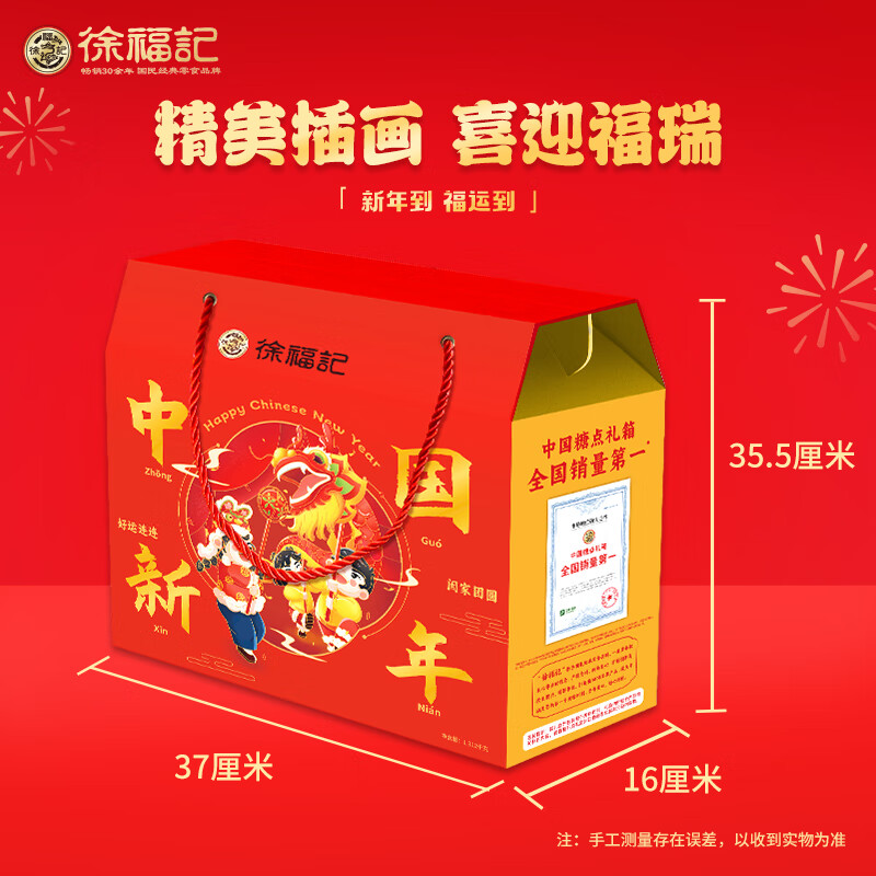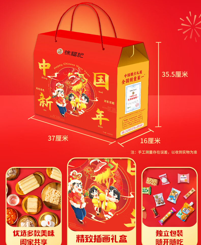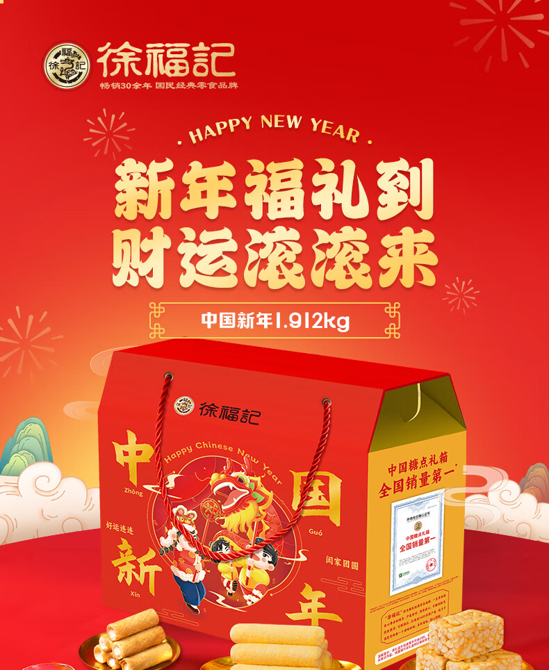 徐福记 中国新年礼盒新年糖果糕点休闲零食大礼包年货春节送礼1912g 1箱 自营