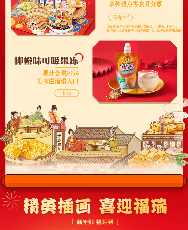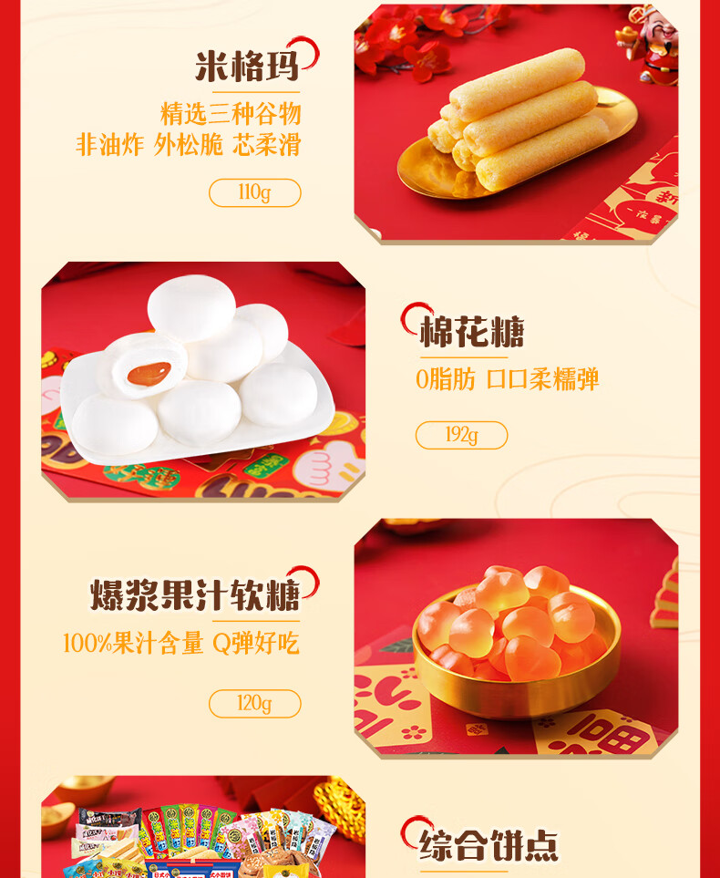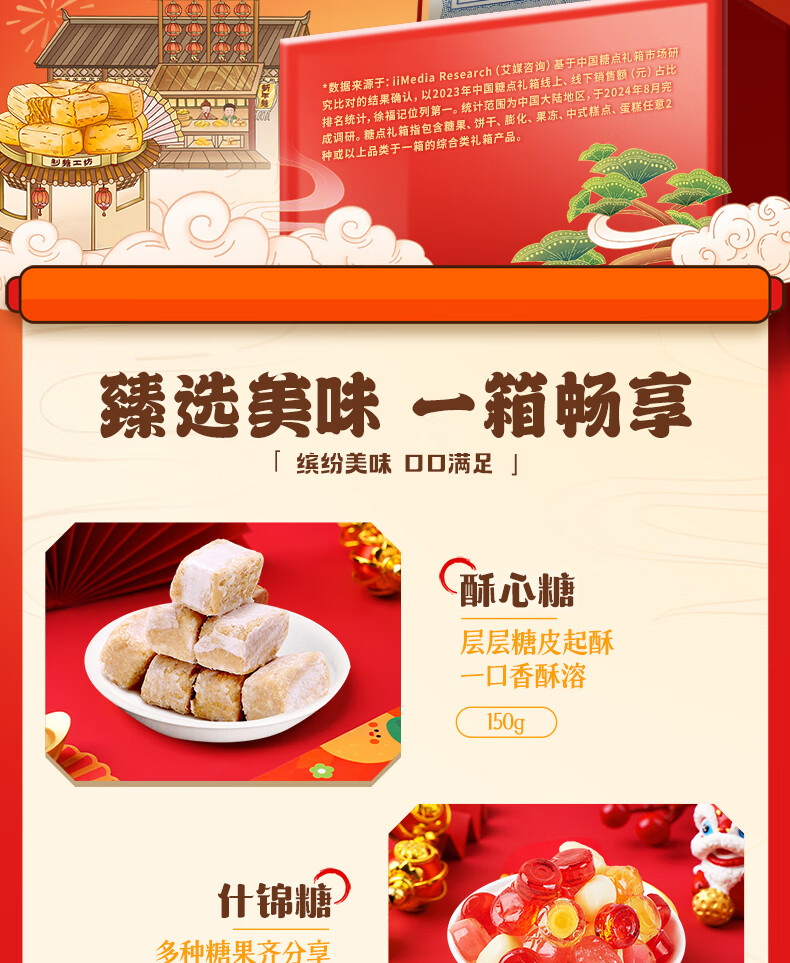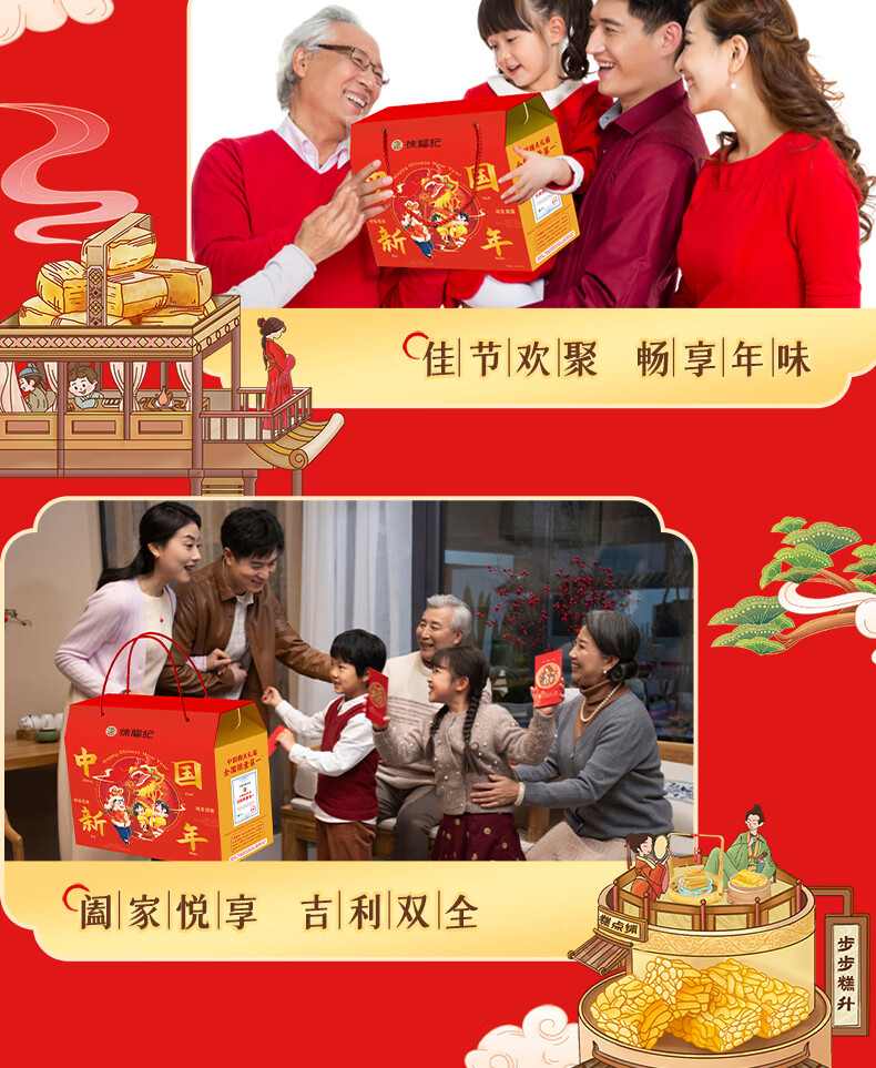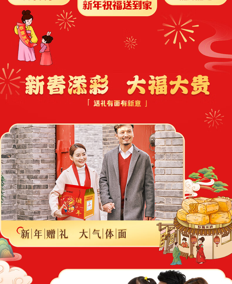 徐福记 中国新年礼盒新年糖果糕点休闲零食大礼包年货春节送礼1912g 1箱 自营