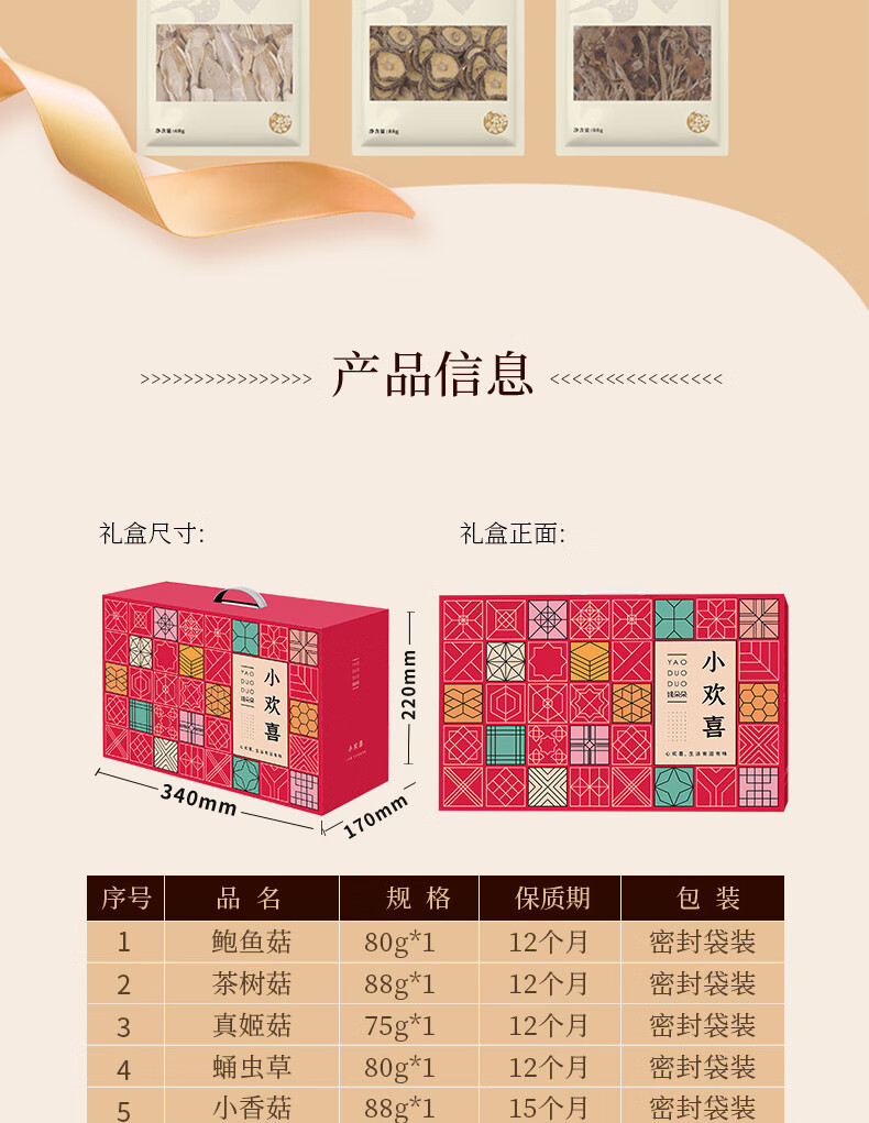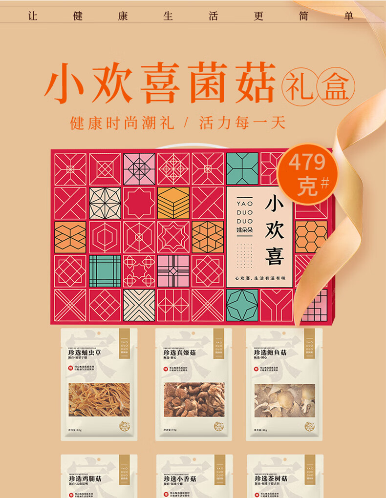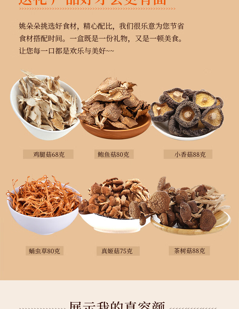 姚朵朵 菌菇礼盒蛹虫草真姬菇鲍鱼菇茶树菇组合 小欢喜礼盒479g 1盒 自营