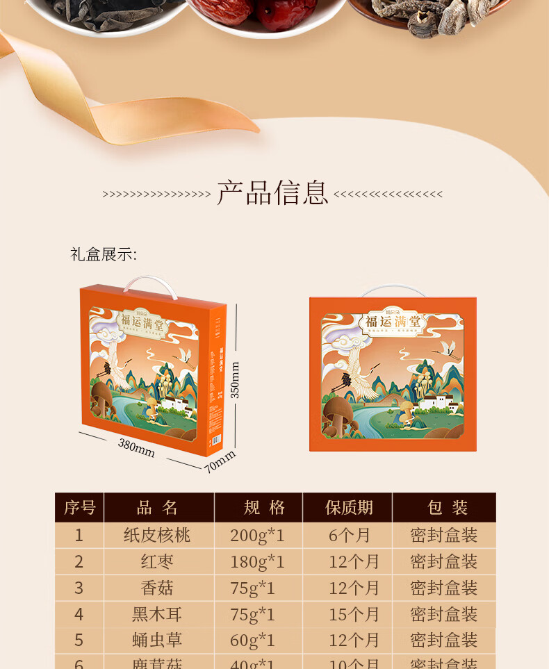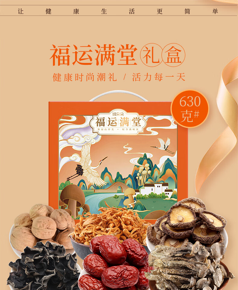 姚朵朵 山菌礼盒南北干货组合节日送礼送朋友长辈 福运满堂礼盒630g 1盒 自营