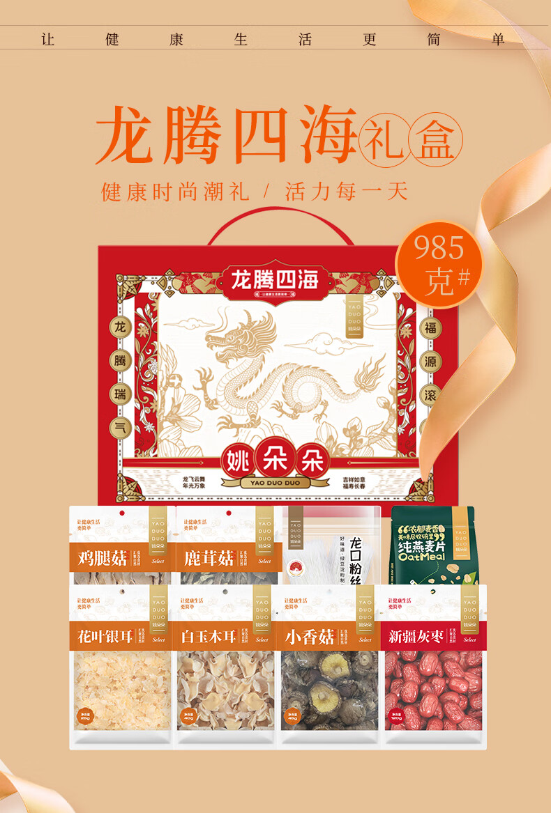 姚朵朵 山菌杂粮礼盒南北干货节日送礼企业福利 龙腾四海礼盒985g 1盒 自营