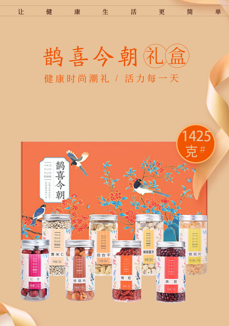 姚朵朵 杂粮干货礼盒南北干货组合家用送礼 鹊喜今朝干货礼盒1425g 1盒 自营