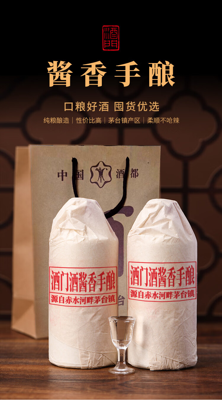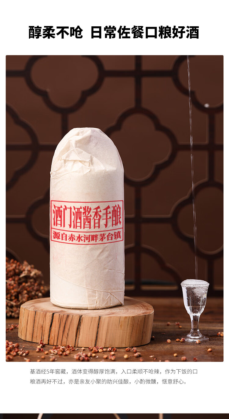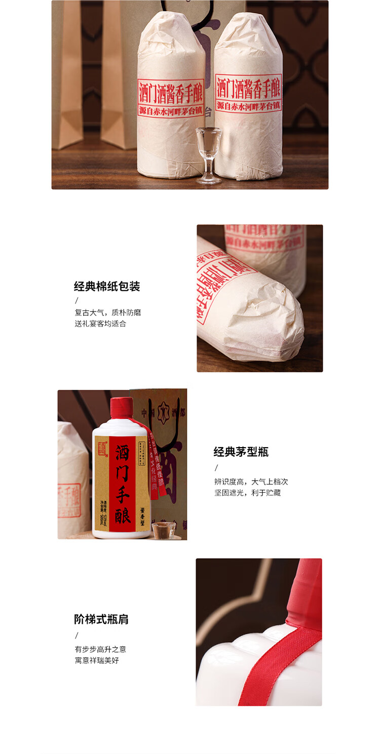 酒门酒 (酱香手酿)53度酱香型白酒 日常口粮好选择 500mL*6瓶 自营