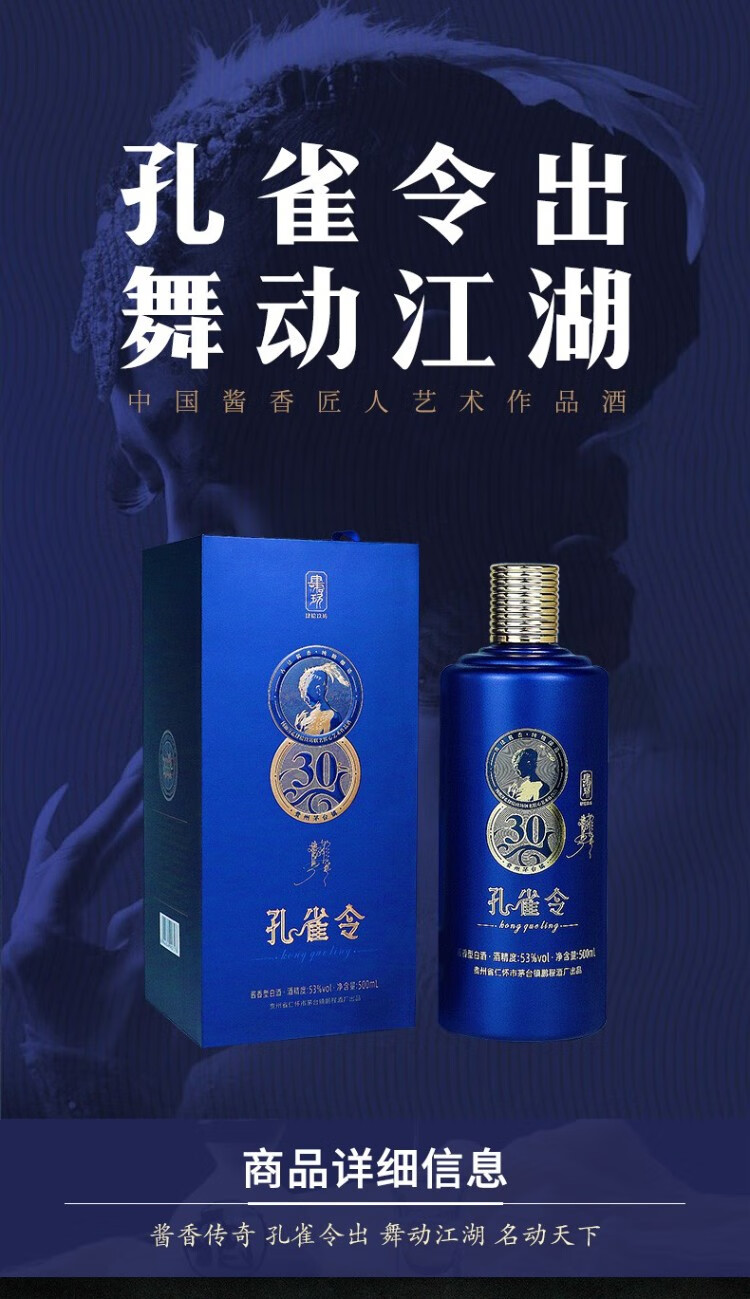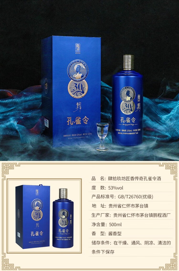 肆拾玖坊 杨丽萍联名 传奇孔雀令 茅台镇白酒53度酱香型 500ml独立礼盒装 自营