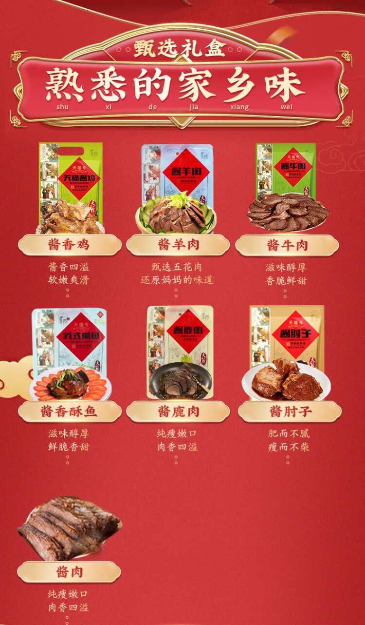天福号 经典酱道熟食礼盒 老北京特产年货酱肉大礼包 1.8kg 自营