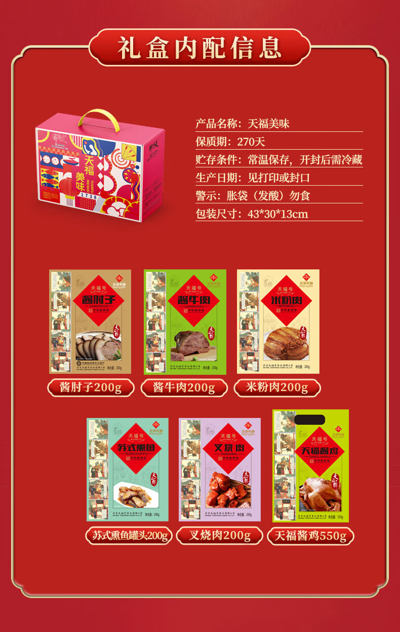 天福号 天福美味熟食礼盒 北京特产酱肉礼盒 1.55kg 自营